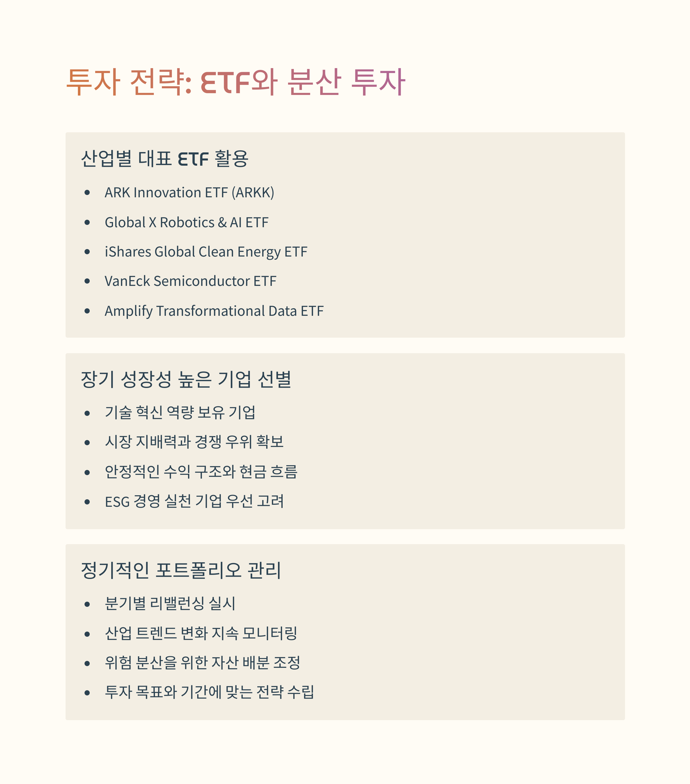 | 산업 | 성장 전망 | 투자 전략 |
