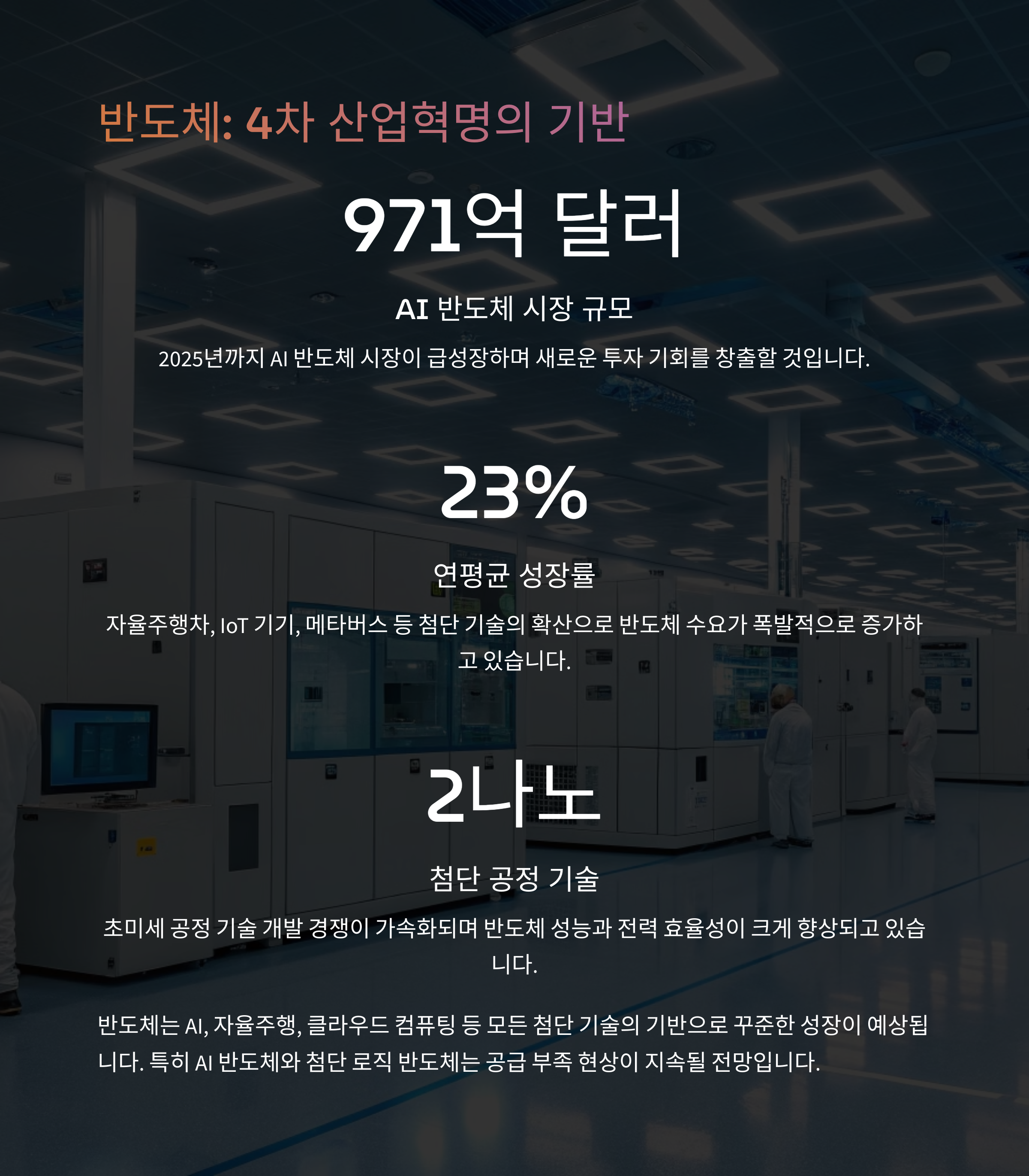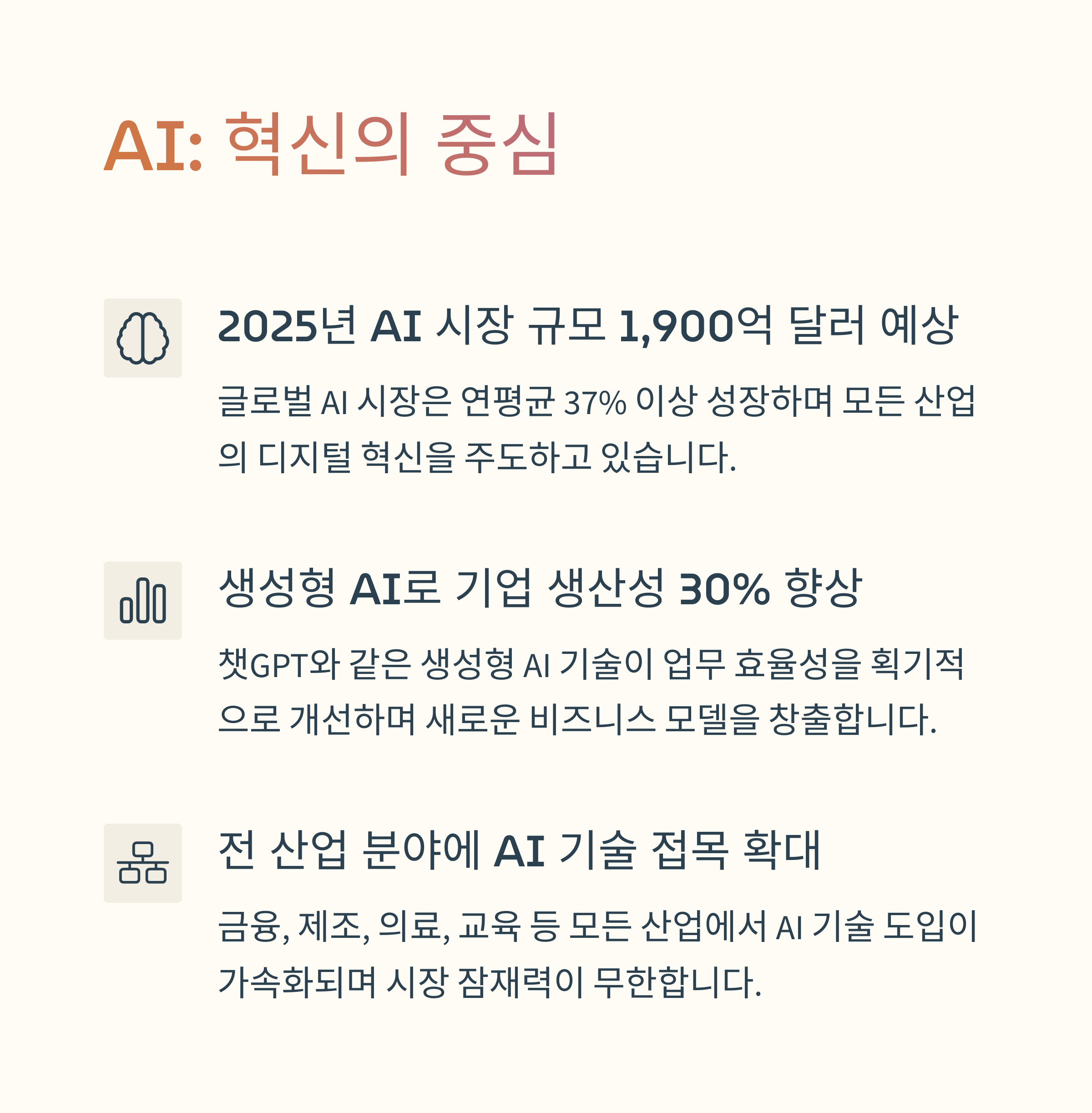 | AI 산업 | 자동화와 생성형 AI 기술로 고성장 중입니다. |