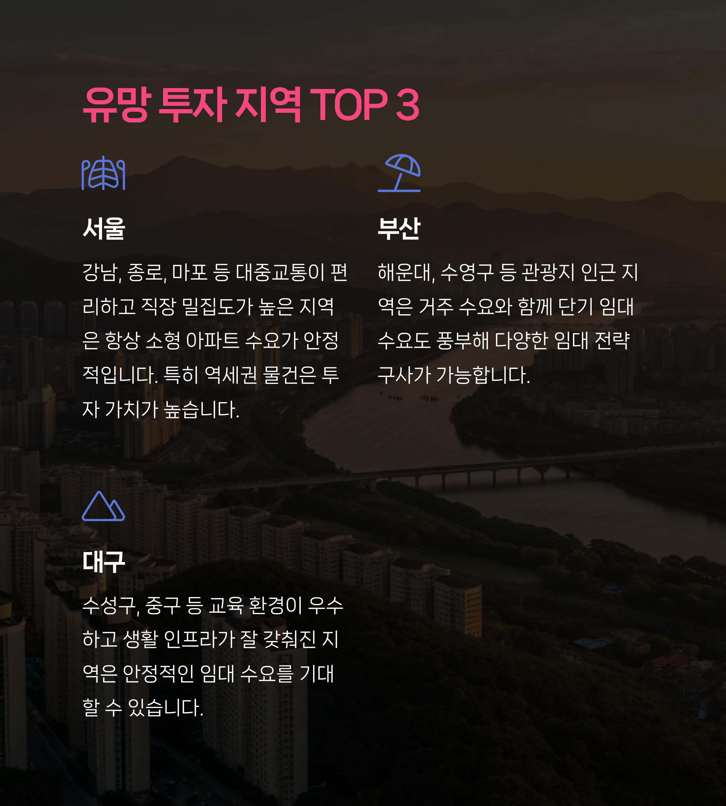 | 투자 지역 | 평균 임대료 | 수익 포인트 |