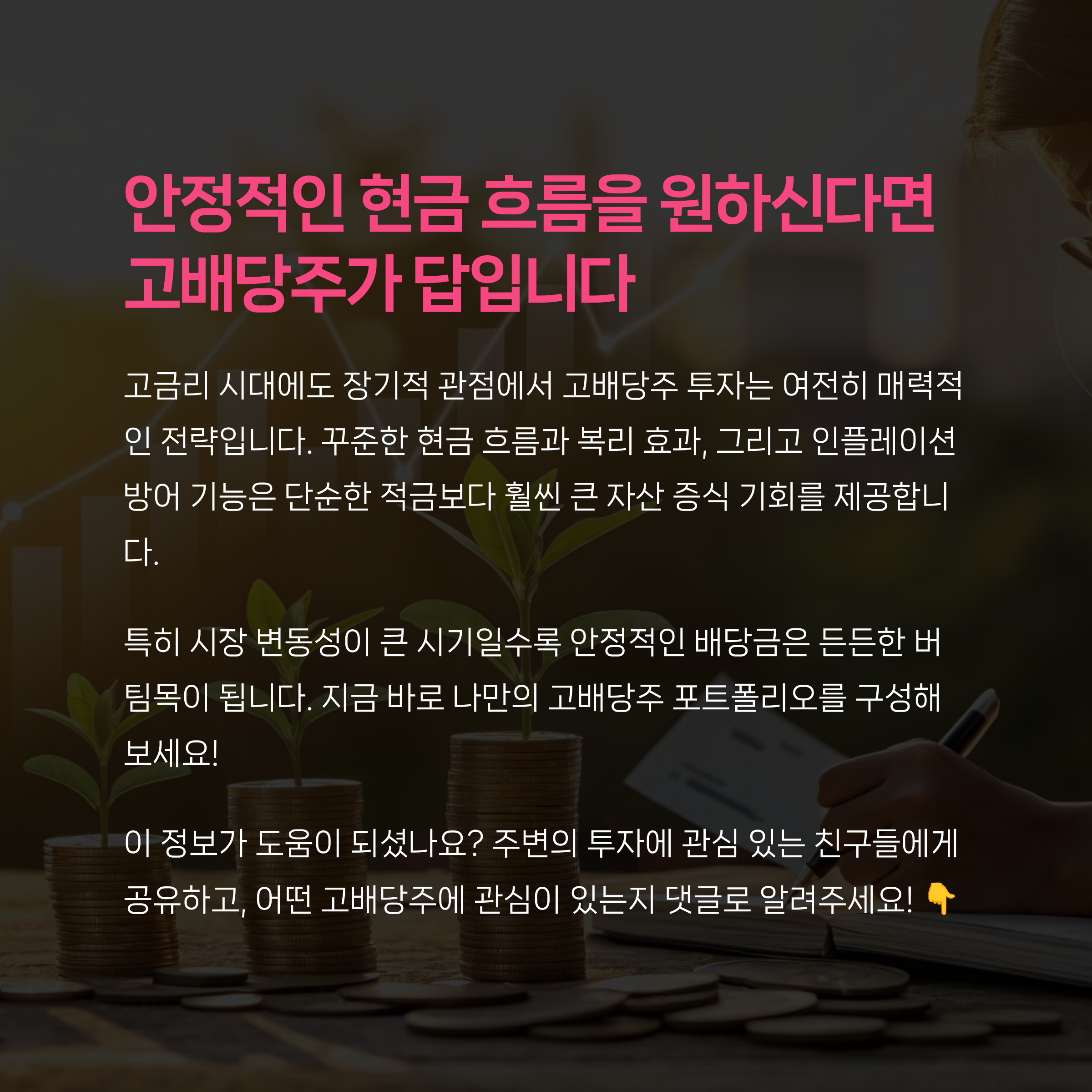 고배당 투자 전략, 관심 종목, 실제 수익 사례 등을 댓글로 공유해주세요. 다양한 투자자들의 의견이 더 나은 전략을 만들어줍니다!