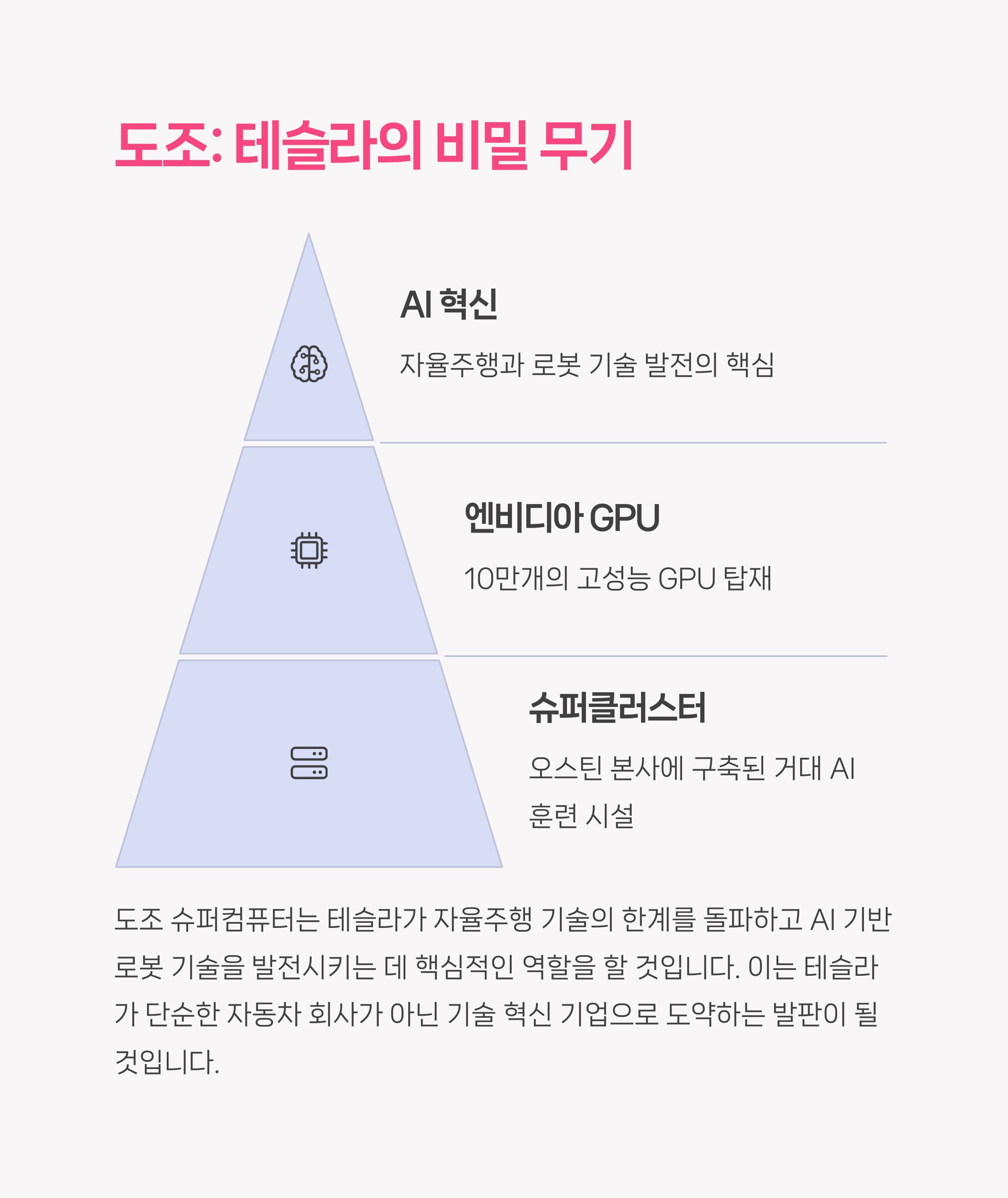 | 매출 증가에도 순이익 감소 | 도조 슈퍼컴퓨터, FSD 베타 확대 | 단기/장기 전략 구분 필요 |