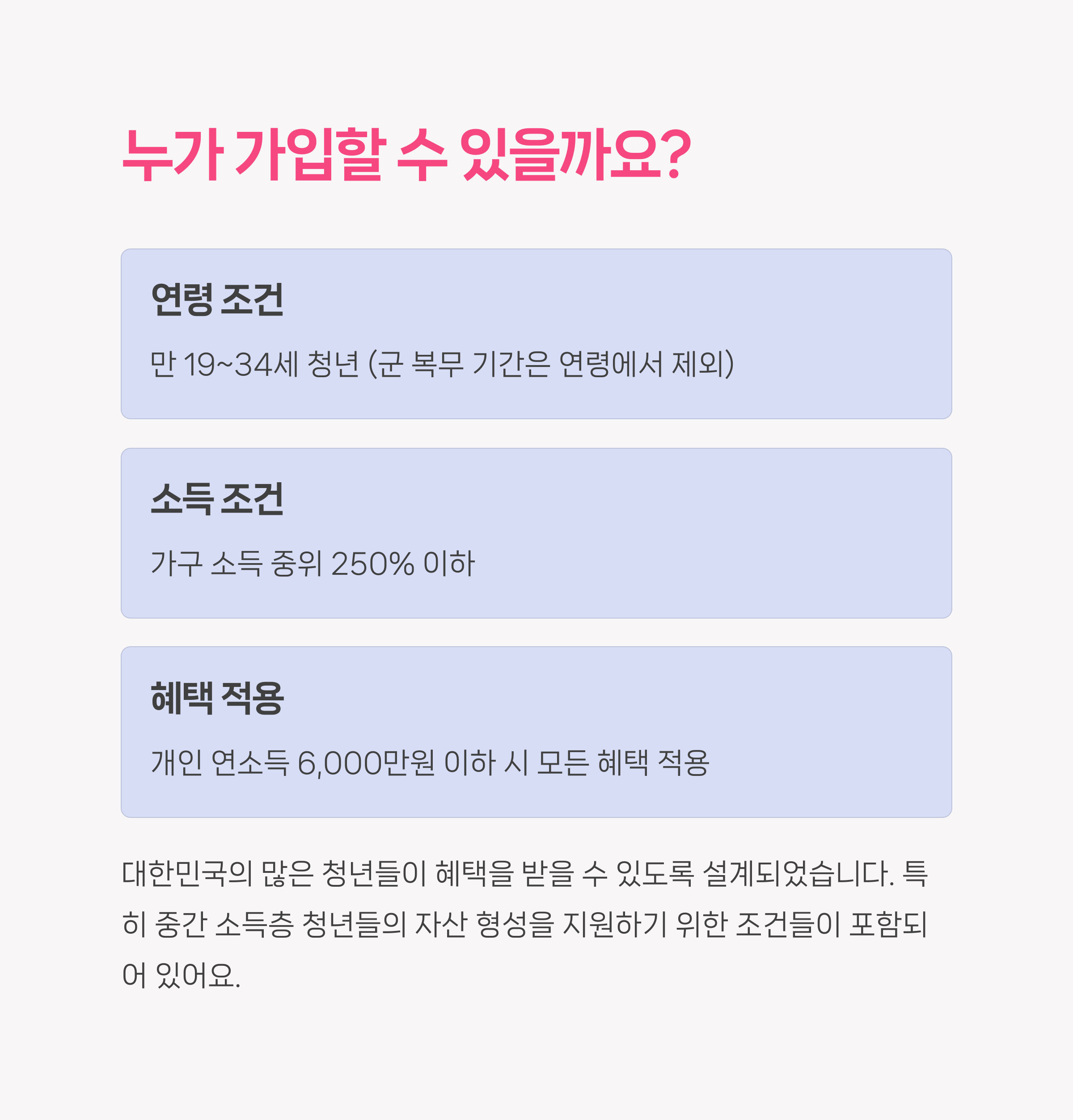 정부 예산 규모 따라 향후 제한 가능성 있음 | 절세 목적 청년층에게 실질적인 장점 제공 | 본인의 재정 상황에 따라 가입 여부 신중 판단 |