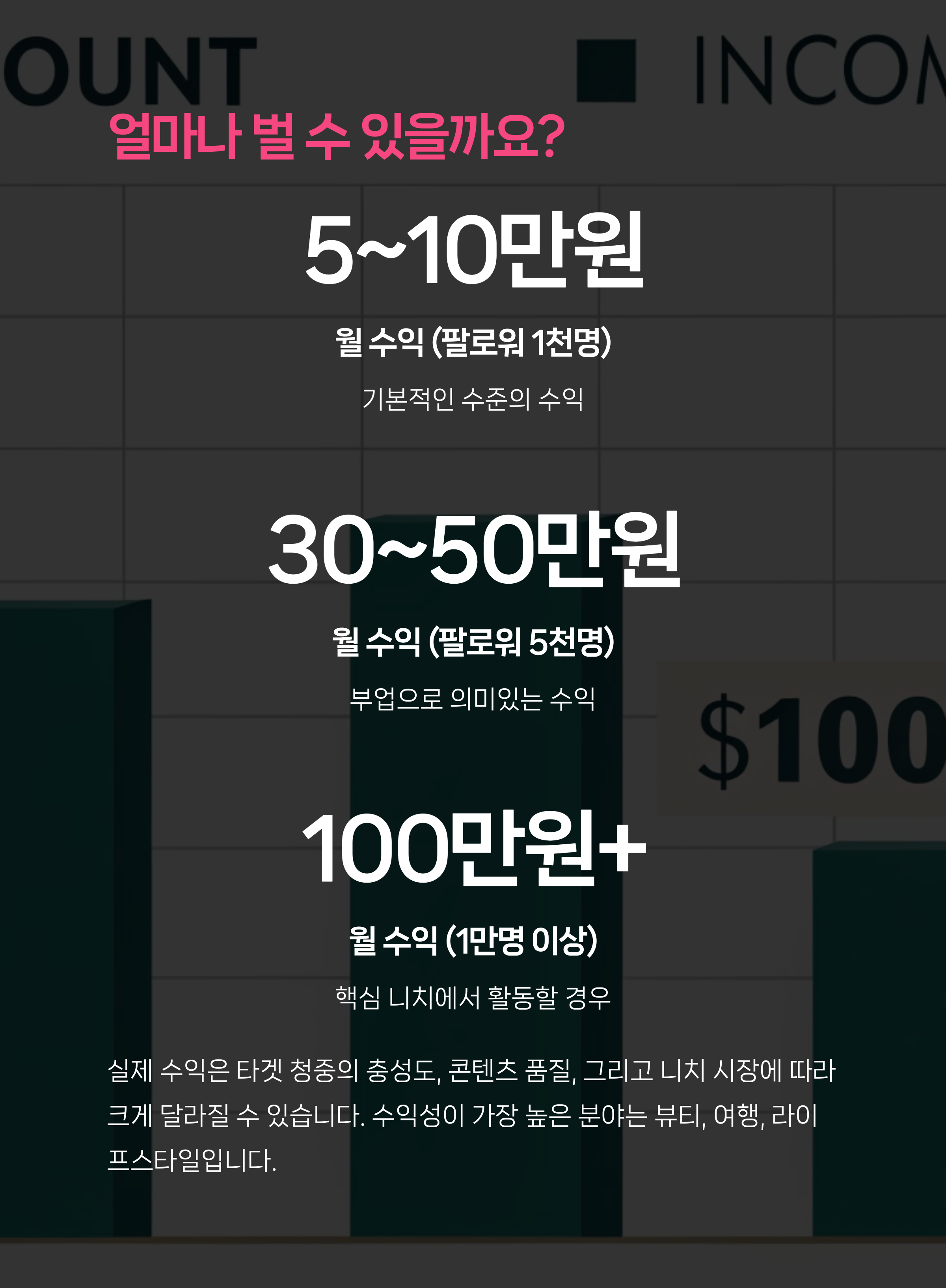 평균 수익 팔로워 1천 명당 월 5~10만 원 수익 가능