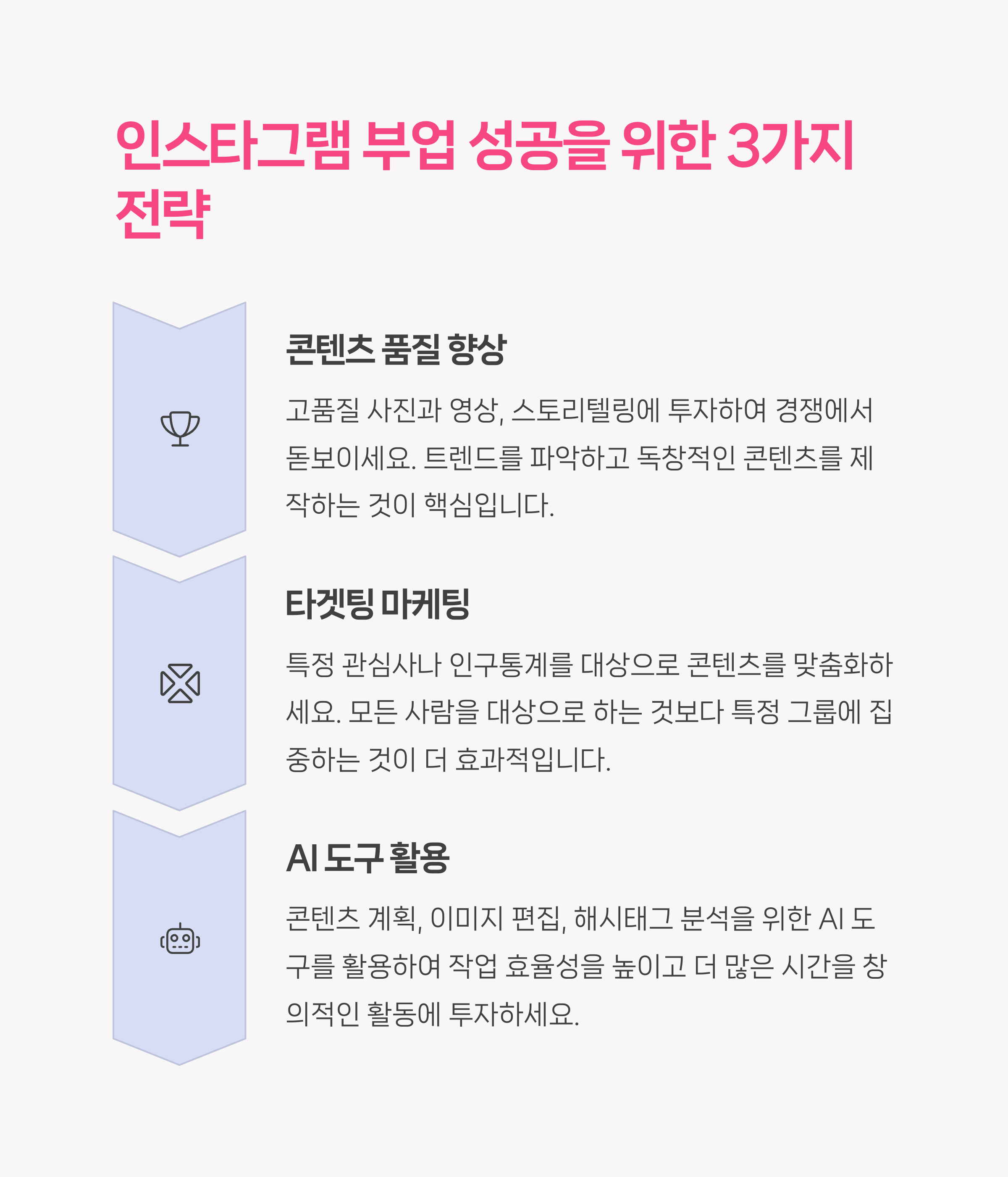 성공적인 인스타 부업을 위해선 콘텐츠의 질이 핵심입니다. 릴스와 스토리 형식에 적합한 짧고 임팩트 있는 콘텐츠를 제작하고, AI 도구를 활용해 이미지나 문구의 완성도를 높이는 것이 중요합니다. 또한 특정 타겟층을 정해 마케팅 전략을 짜면 전환율이 상승하며, 유료 SNS 광고를 활용하면 팔로워 확보에도 효과적입니다. 단, 사기성 홍보나 허위 수익 약속에 주의하고, 검증된 방식으로 장기적인 부업 모델을 구축하는 것이 가장 안전합니다.