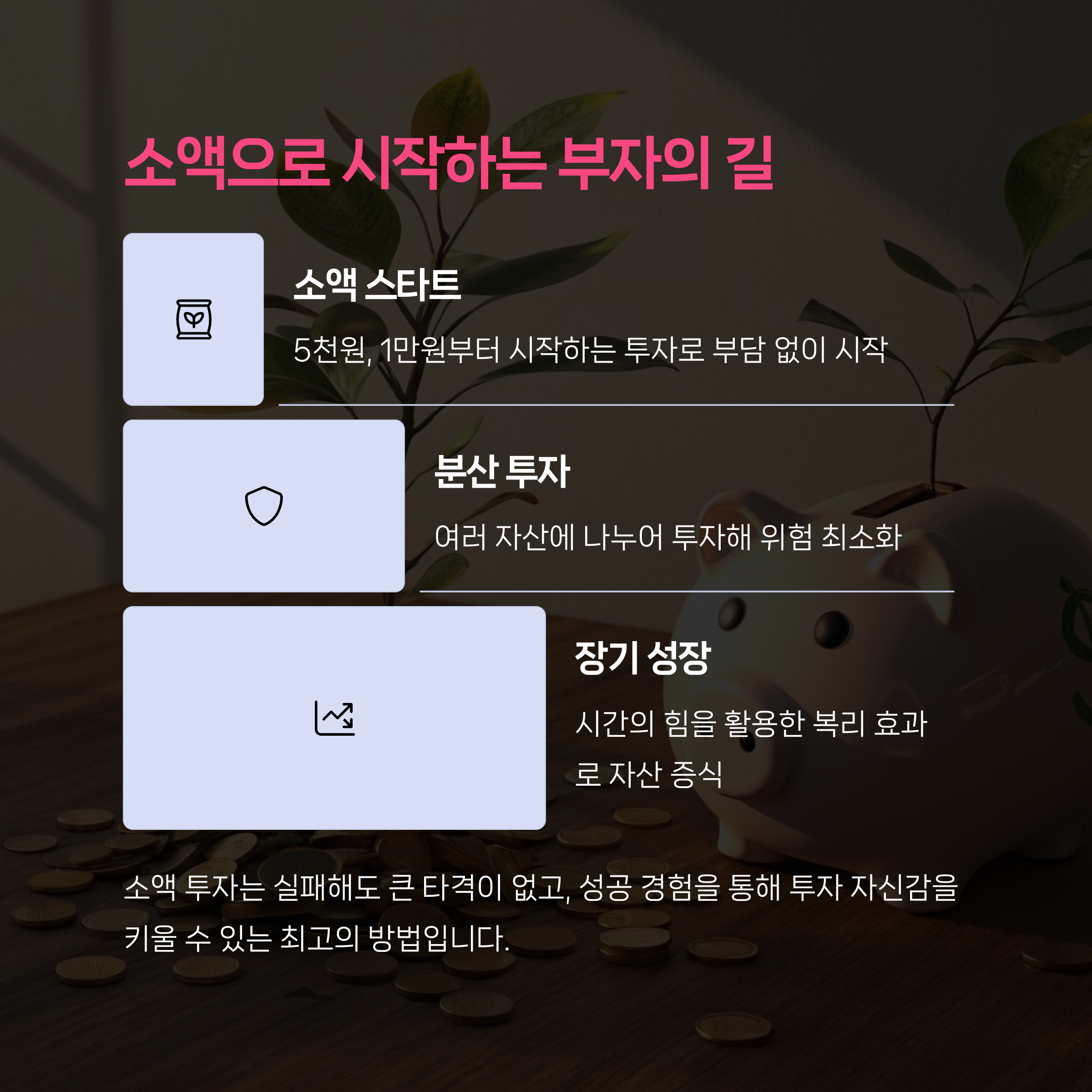 적은 금액으로도 분산 투자 효과를 누릴 수 있습니다.