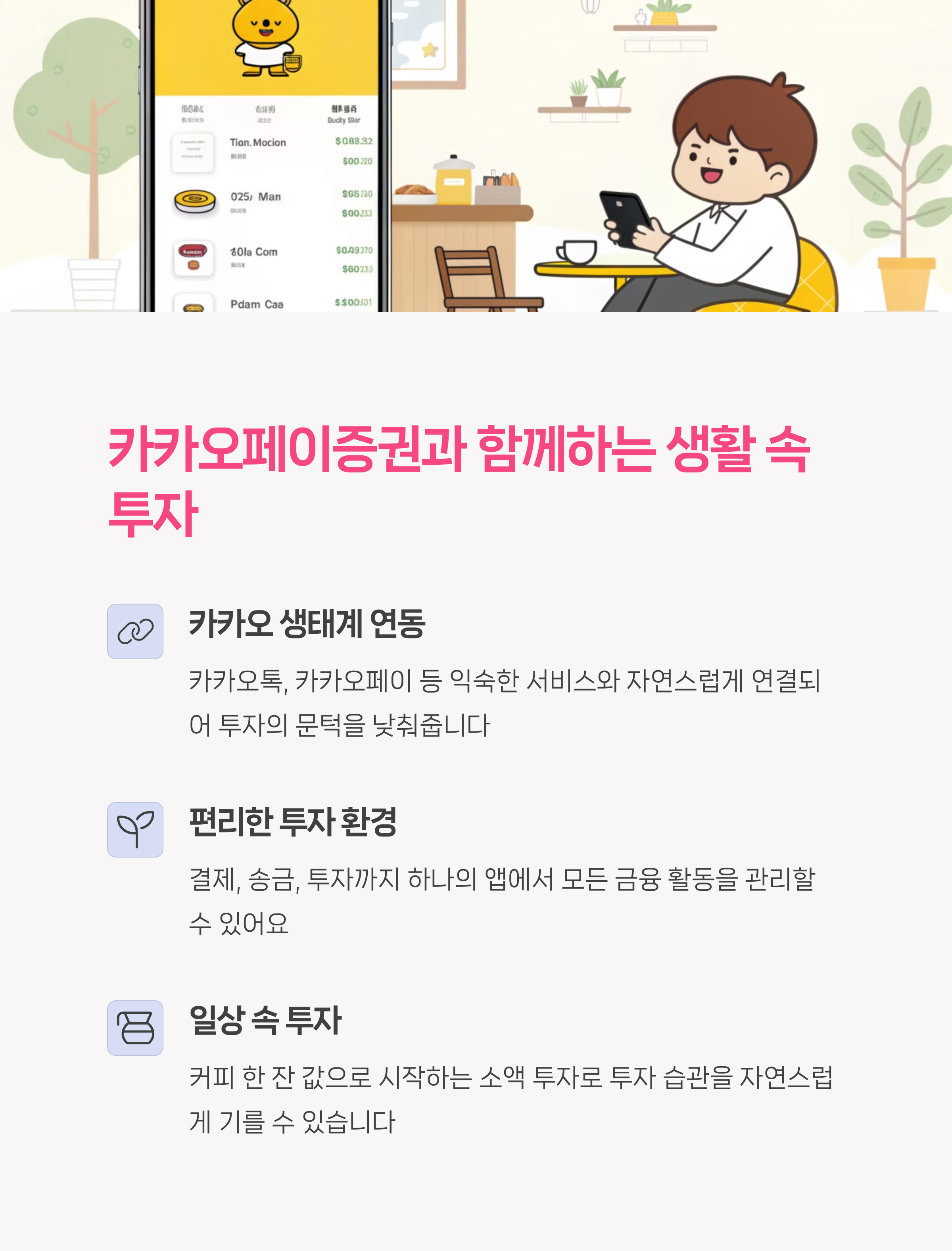 카카오 연동성, 직관적 화면, 쉬운 매수매도 | 수수료, 편의성, 사용자 UI, 맞춤 기능 여부 | 금융 초보자, 소액 투자자, 자동 리밸런싱 선호자 |