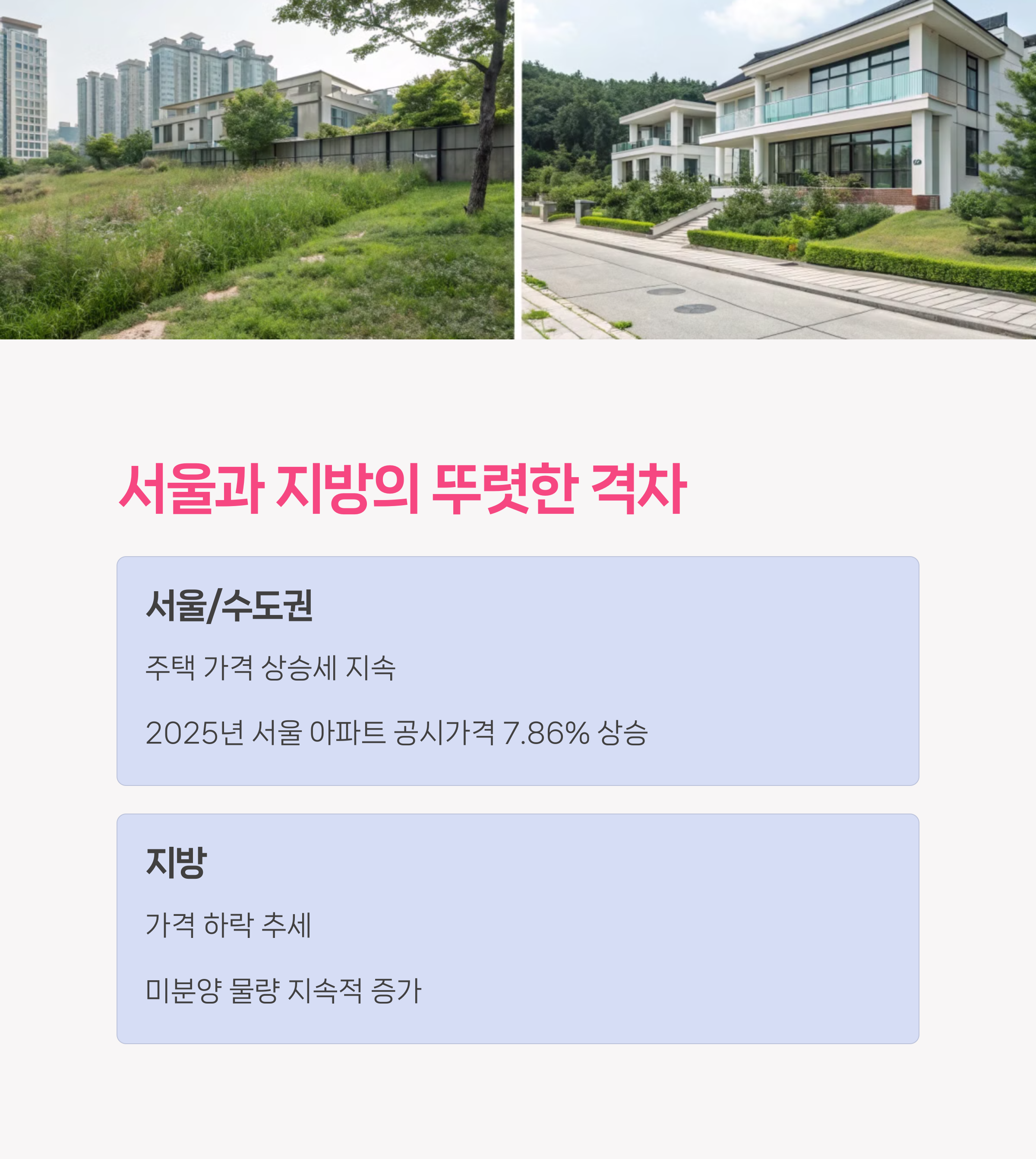 특히 서울 및 수도권은 여전히 강한 가격 회복력을 보이는 반면, 지방은 미분양과 가격 하락이 동반되는 이중 구조 현상이 심화되고 있습니다. 이러한 구조 속에서 투자자들이 주목해야 할 포인트는 무엇인지, 그리고 시장 변화 속에서 어떤 전략으로 접근해야 할지를 이번 콘텐츠를 통해 심도 있게 살펴보겠습니다.