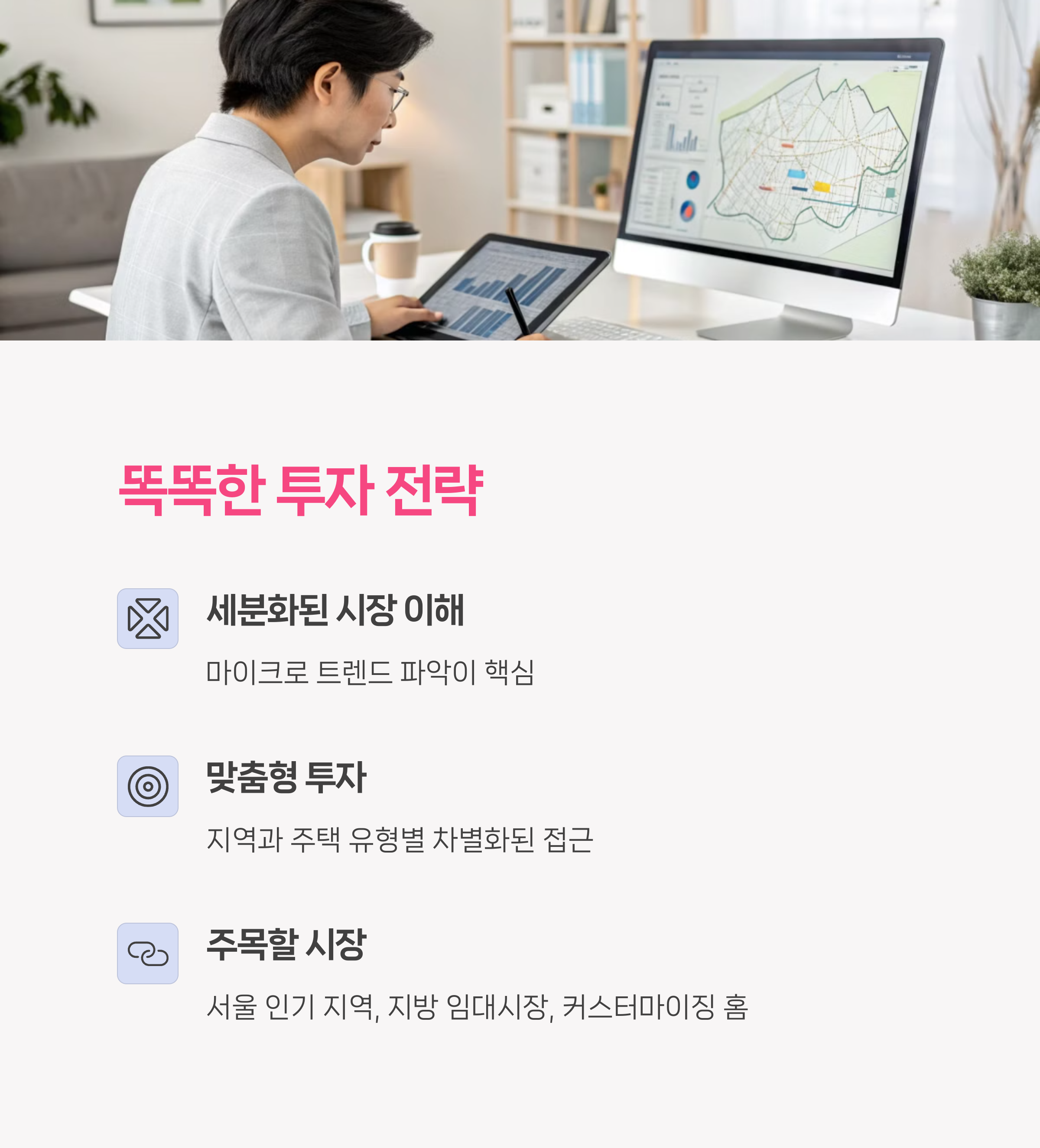 | 투자 전략 핵심은? | 지역별 격차를 이해하고, 커스터마이징된 주거 상품에 집중하는 것이 유리합니다. |