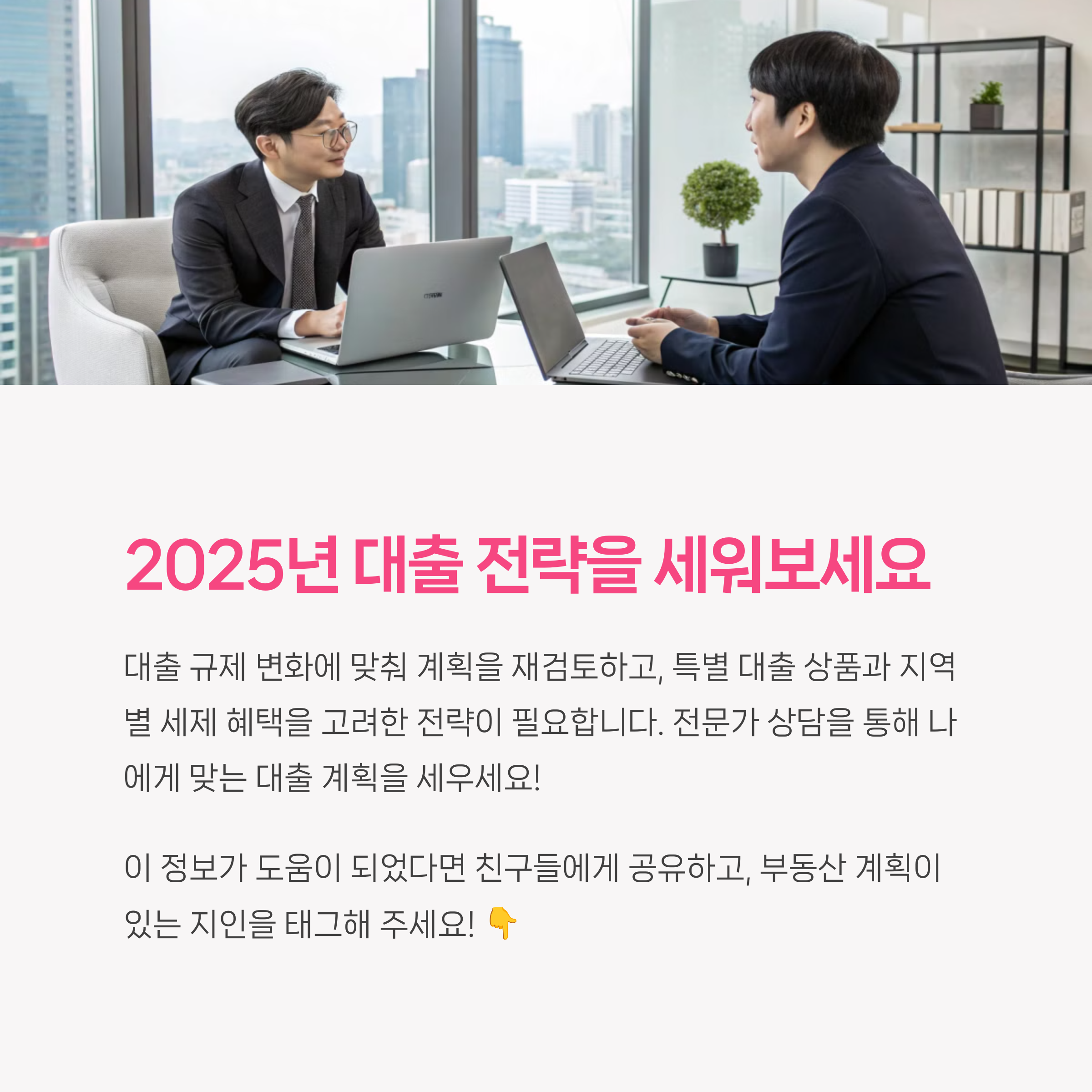 2025년 대출 환경은 실수요자에게 기회와 제한이 동시에 존재하는 구조입니다.