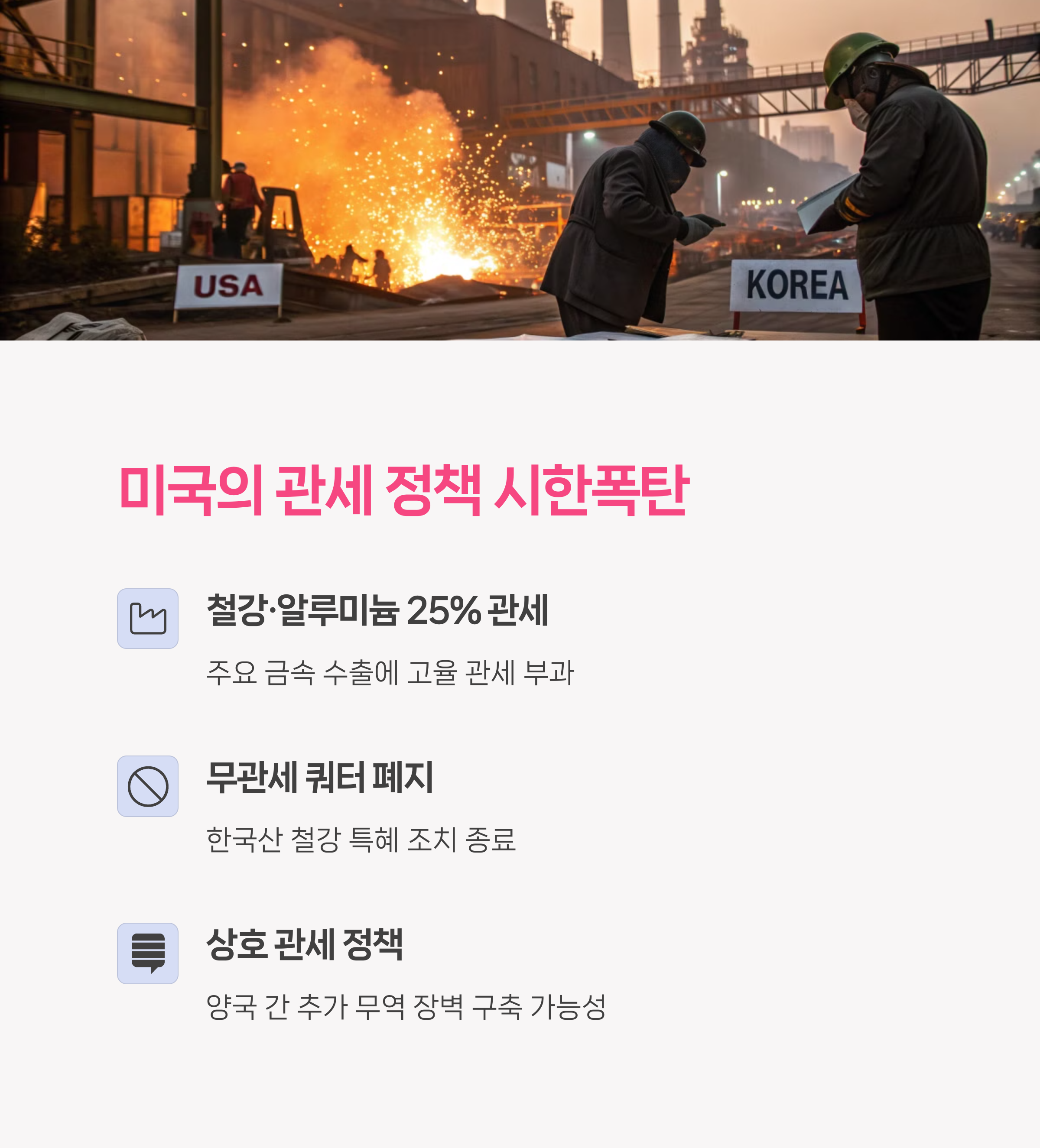 | 철강·알루미늄 25% 관세 무관세 쿼터 폐지 |
