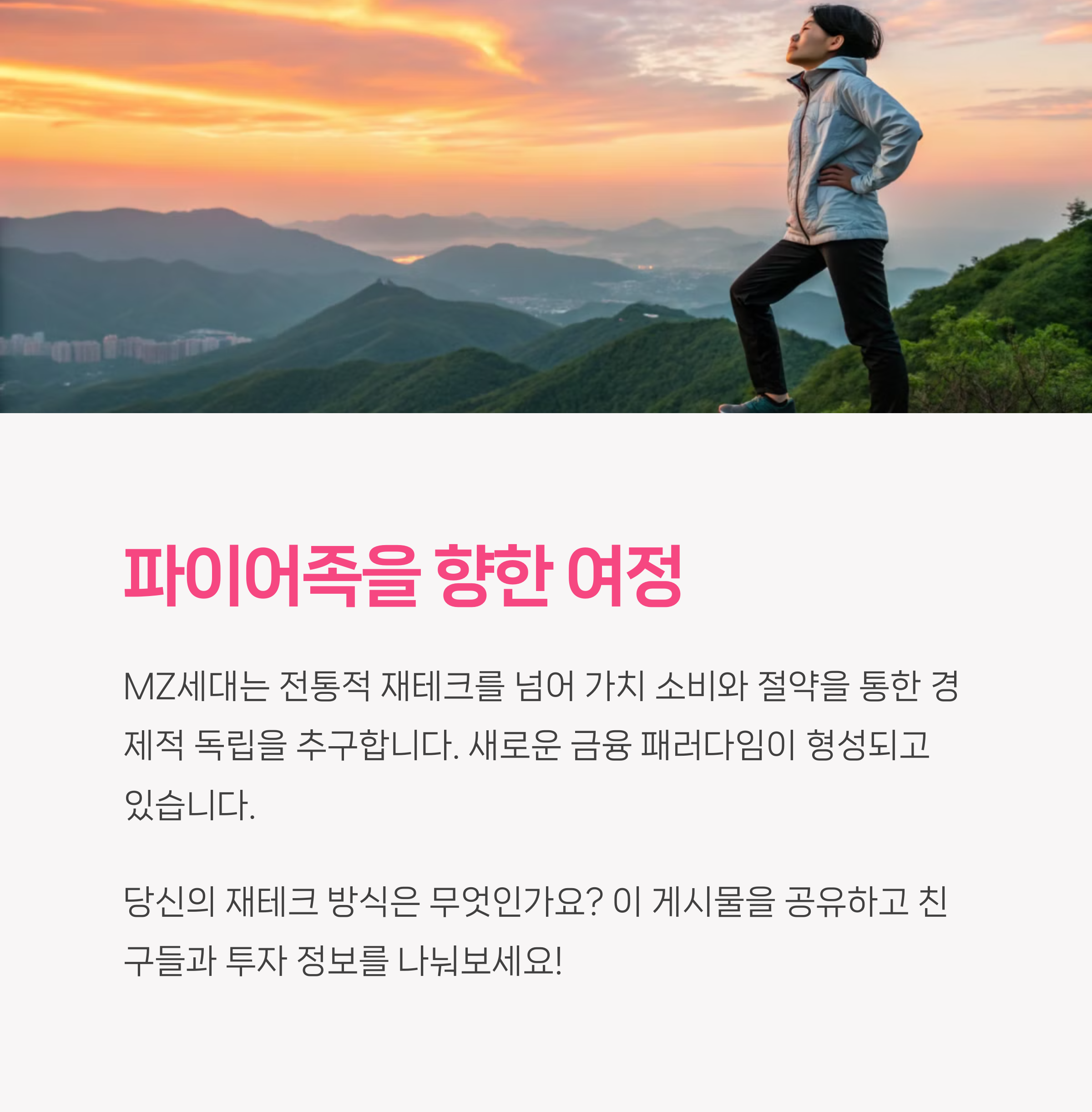 MZ세대는 이제 '파이어족(FIRE)'을 목표로 삼아, 조기 은퇴와 경제적 자유를 꿈꾸고 있습니다.