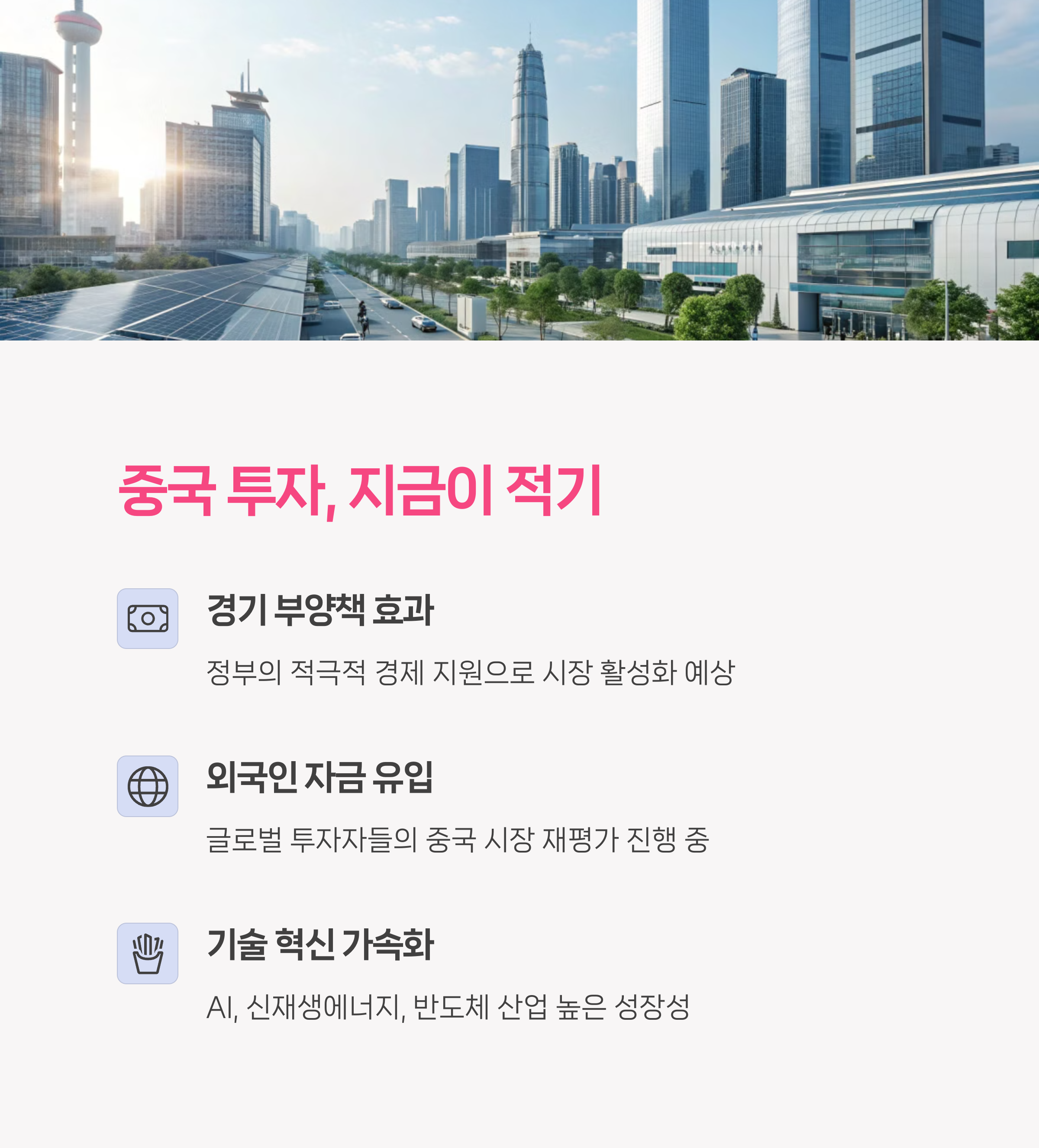 특히 중국 시장은 밸류에이션 매력과 산업 성장성이 겹치며 새로운 투자 기회를 제공하고 있습니다.