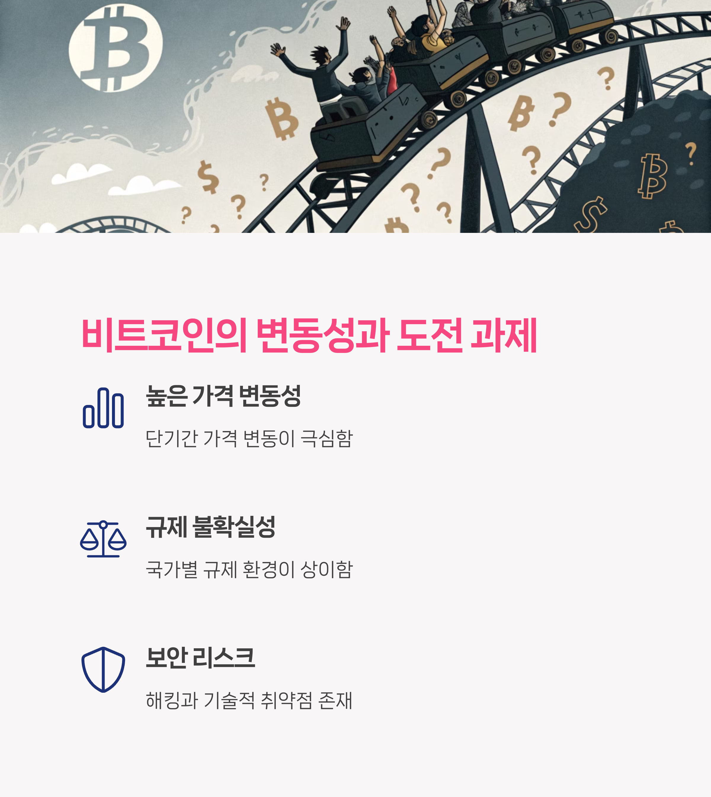하지만 여전히 가격 변동성과 규제 불확실성이라는 한계가 존재합니다.