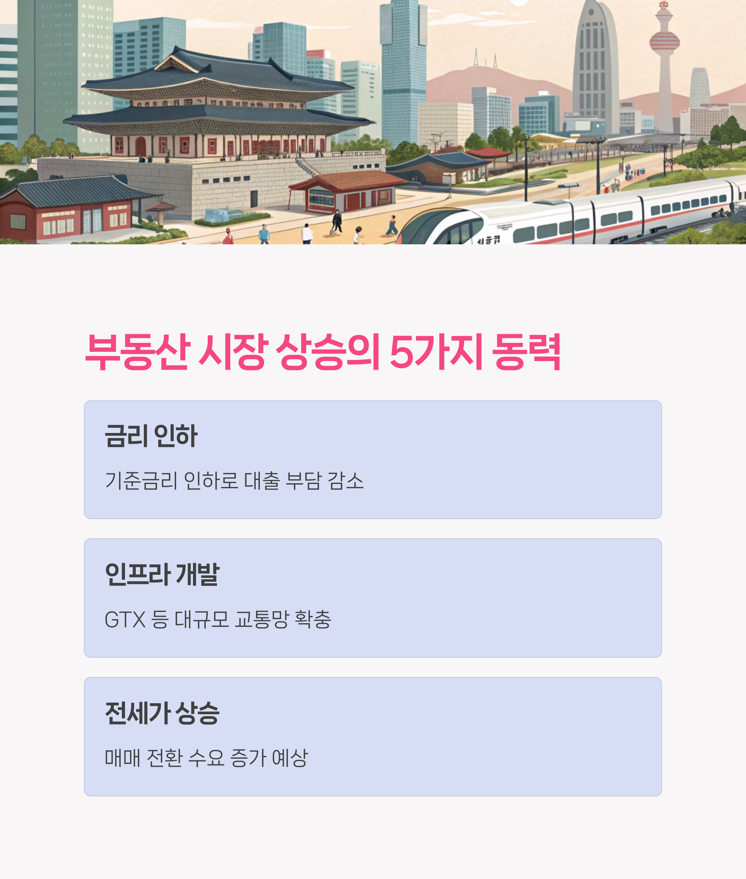 그 중심에는 서울 및 수도권의 공급 부족, 금리 인하, 정책 변화 등의 요소가 자리 잡고 있습니다.