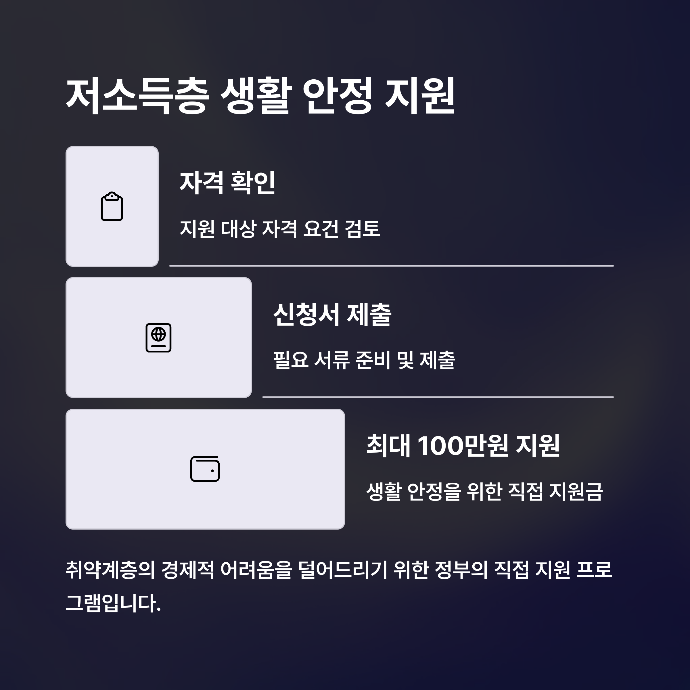 대표적인 저소득층 대상 지원으로는 한시생활지원금이 있으며,
