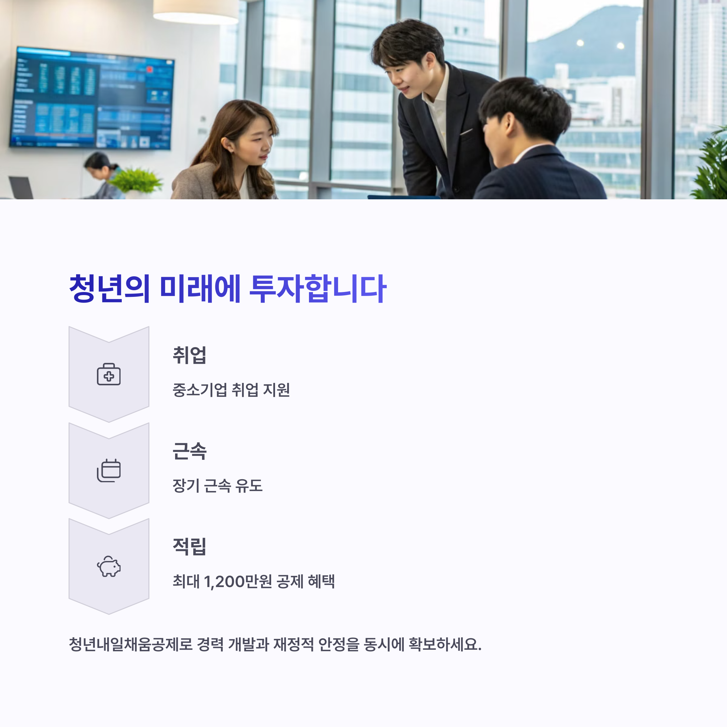 청년층의 경우 청년내일채움공제를 통해 일정 조건 하에 최대 1,200만 원까지 받을 수 있고,