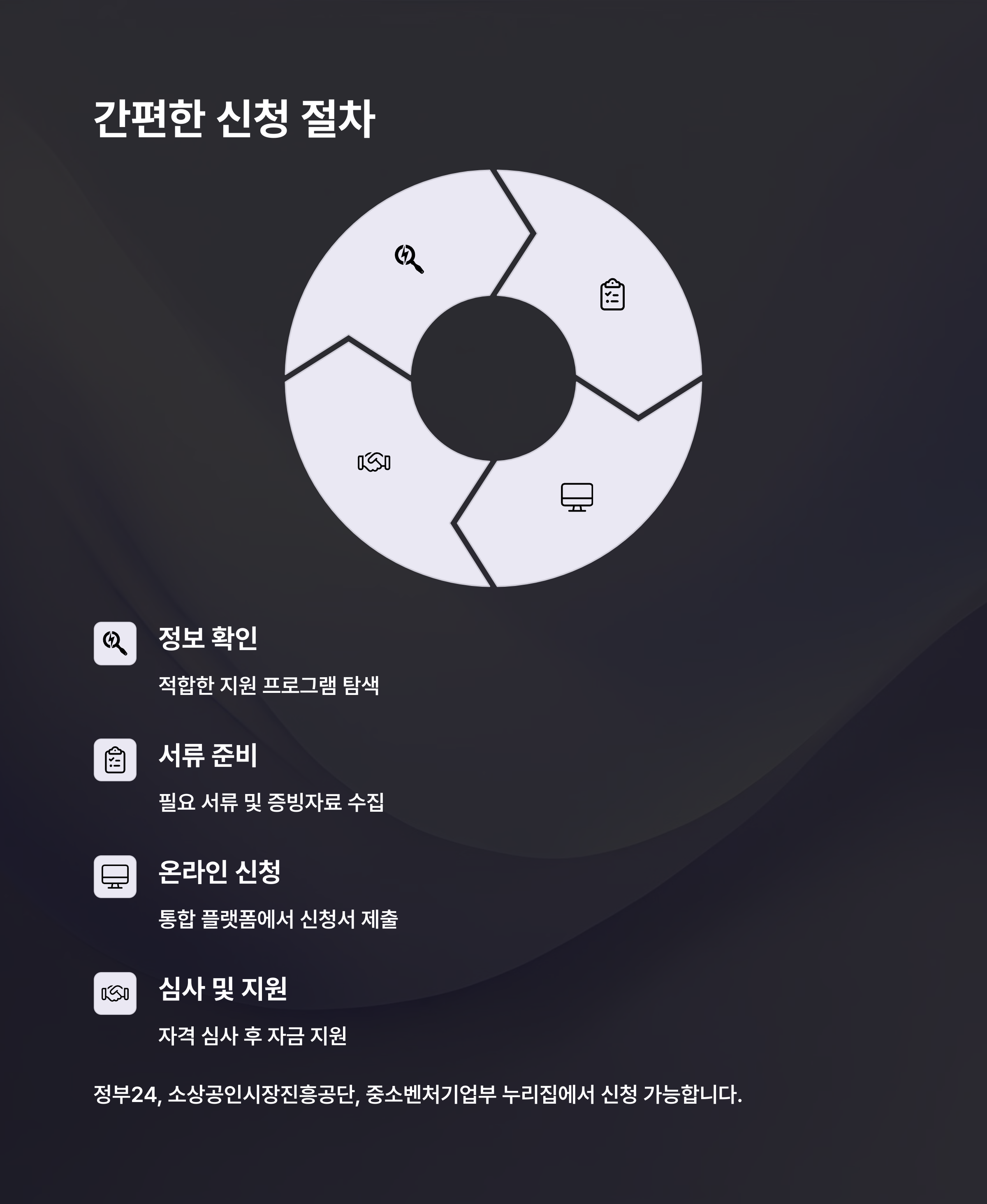 신청은 대부분 온라인으로 가능하며, K-스타트업, 정책자금 통합 포털, 지자체 사이트 등에서 진행됩니다. 신청 후 서류 심사, 면접(필요 시), 최종 선정, 자금 지급까지의 절차가 평균 1~3개월 소요됩니다.