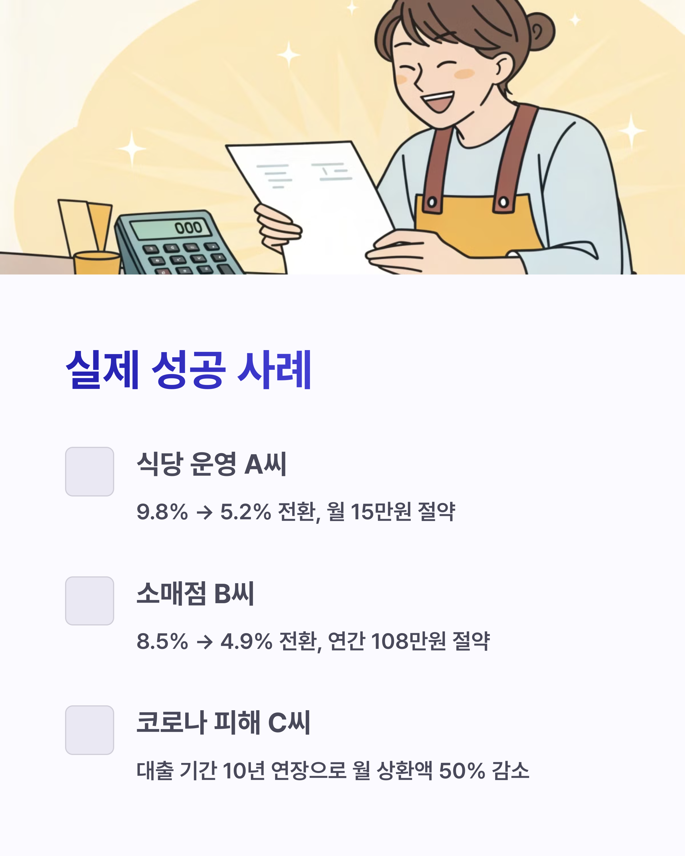 “이자 부담을 줄이면, 사업이 살아납니다!”