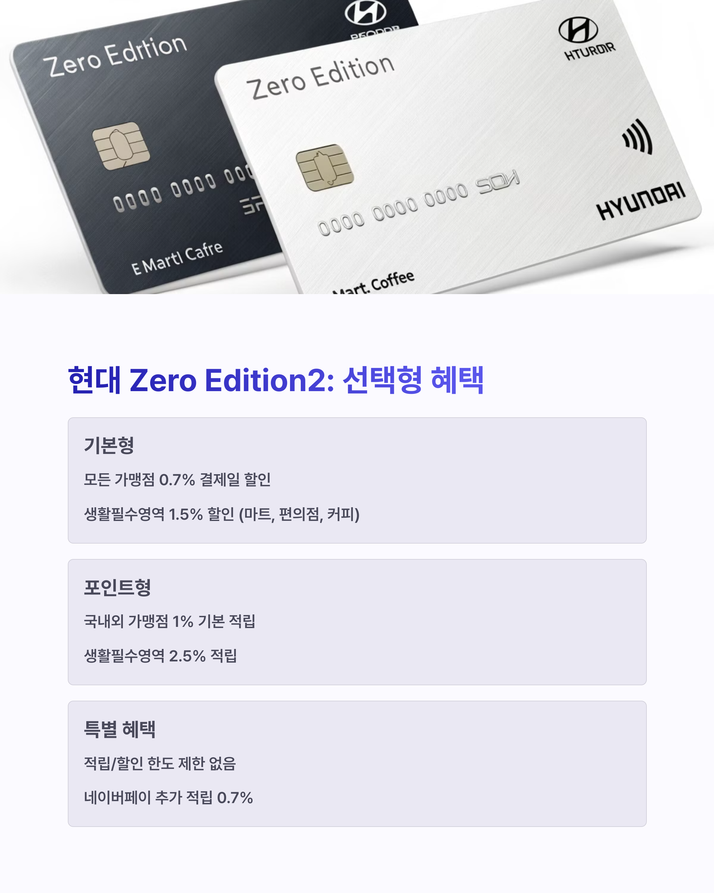 현대 Zero Edition2는 심플한 캐시백형 카드로 추천드립니다.