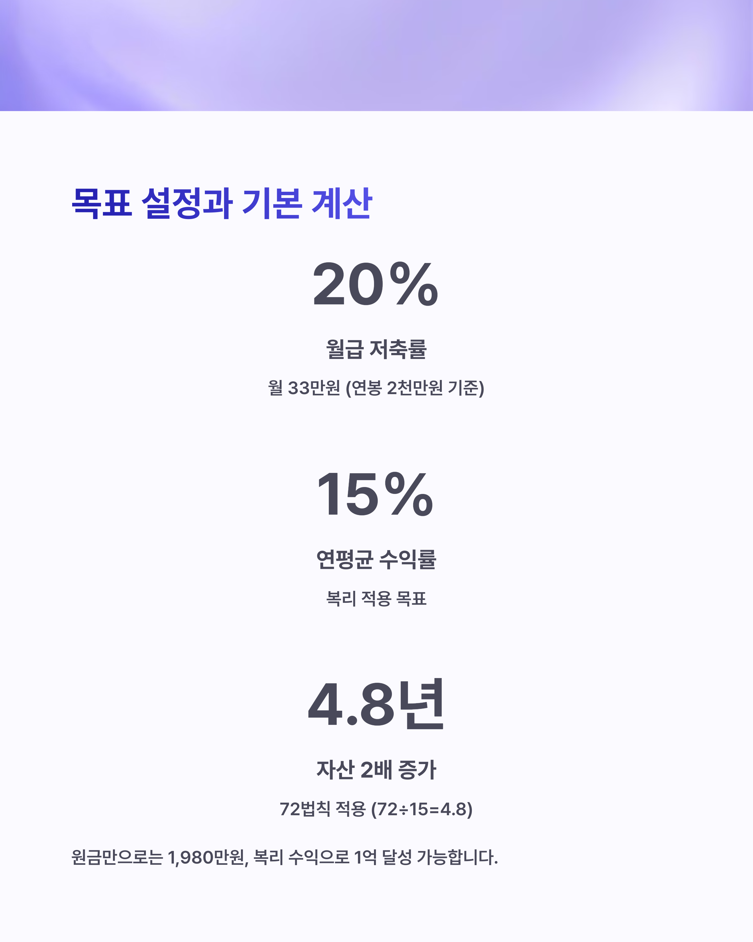 1억 원이라는 목표는 막연하게 들릴 수 있지만, 숫자로 쪼개 보면 훨씬 현실적으로 다가옵니다.
