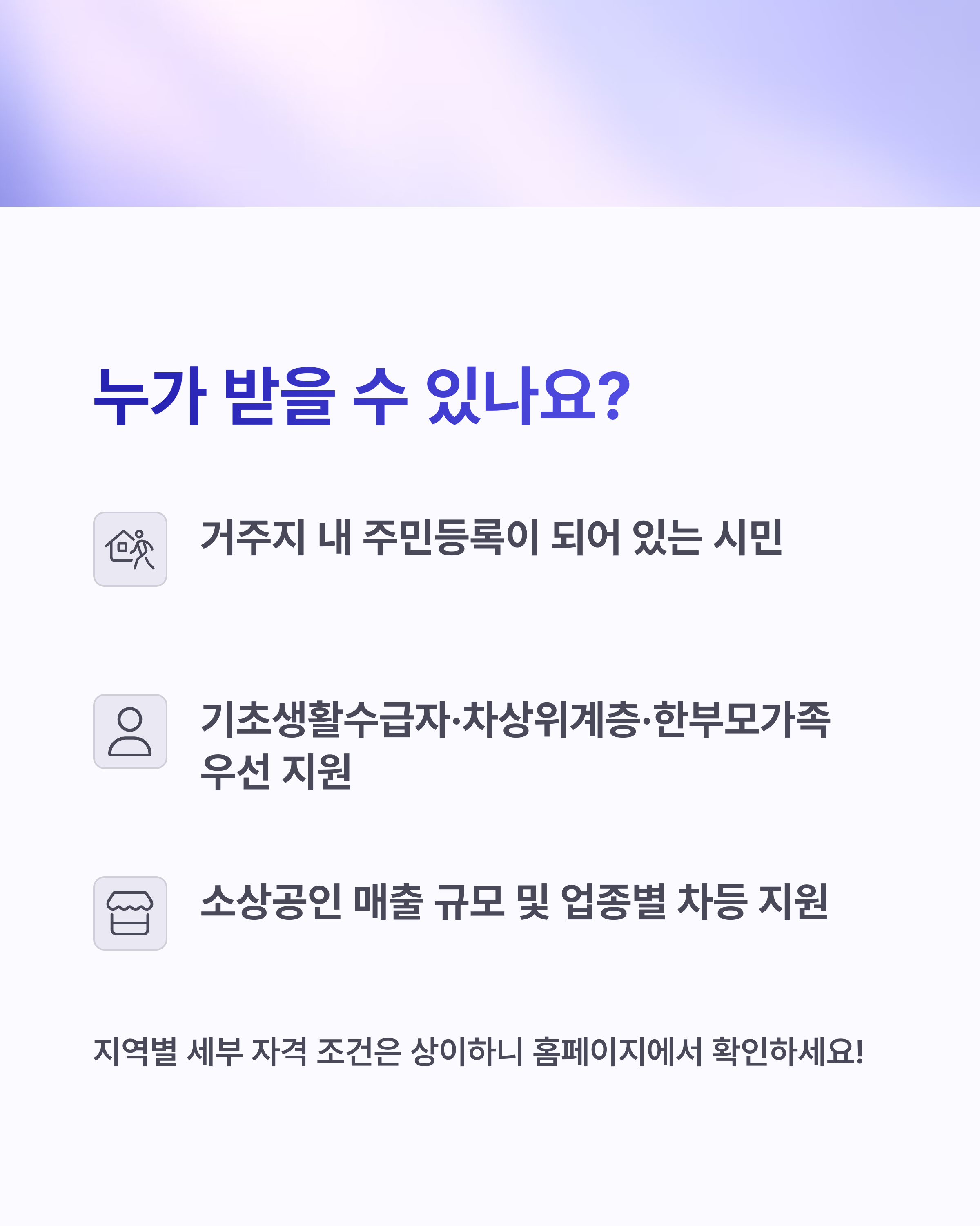 - ✅ 온누리상품권, 배달비, 철거비 등 중복 지원 여부 체크