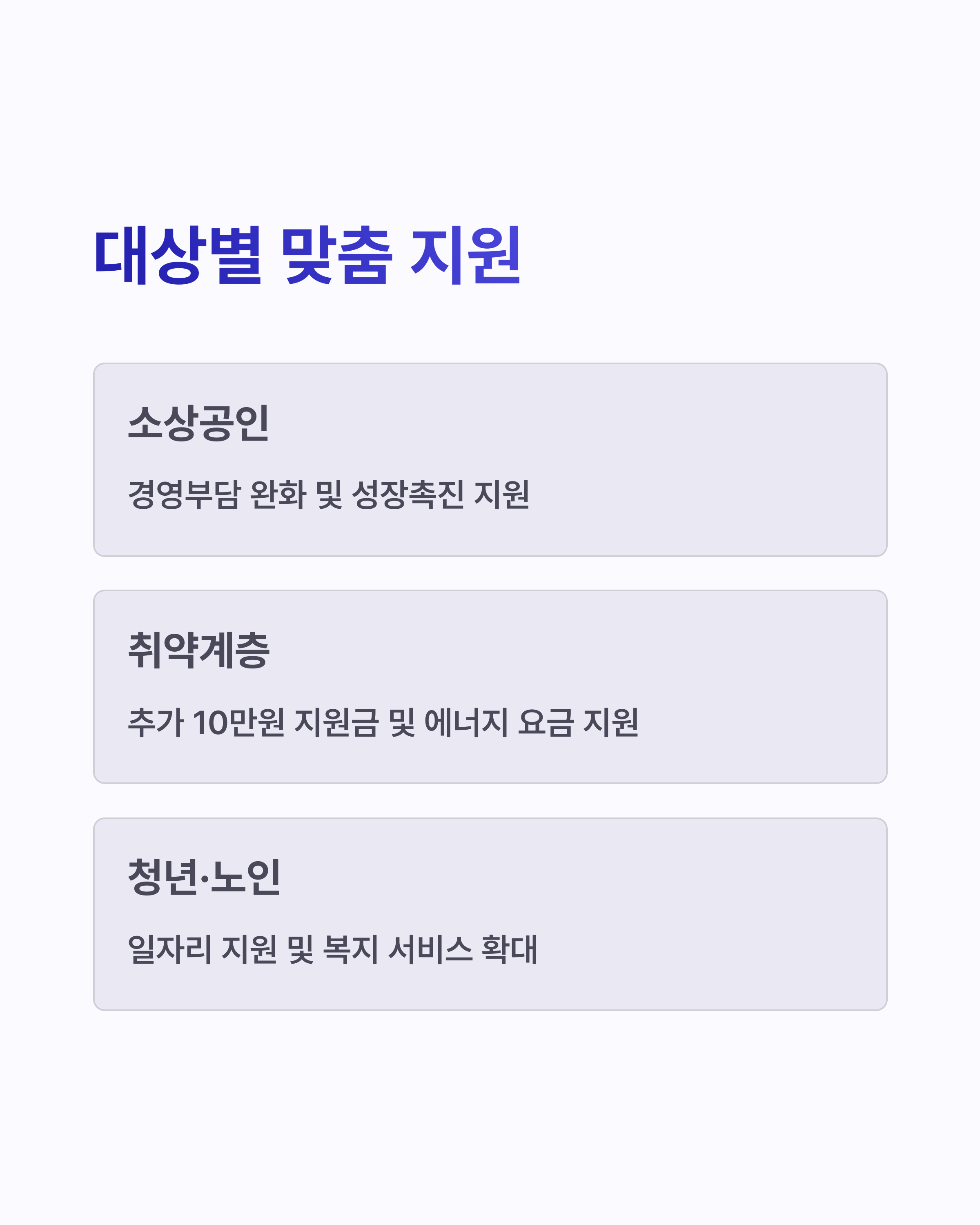 ✔️ 청년, 노인 등 취약계층에 맞춤형 지원도 포함되어 실질적 도움 가능!