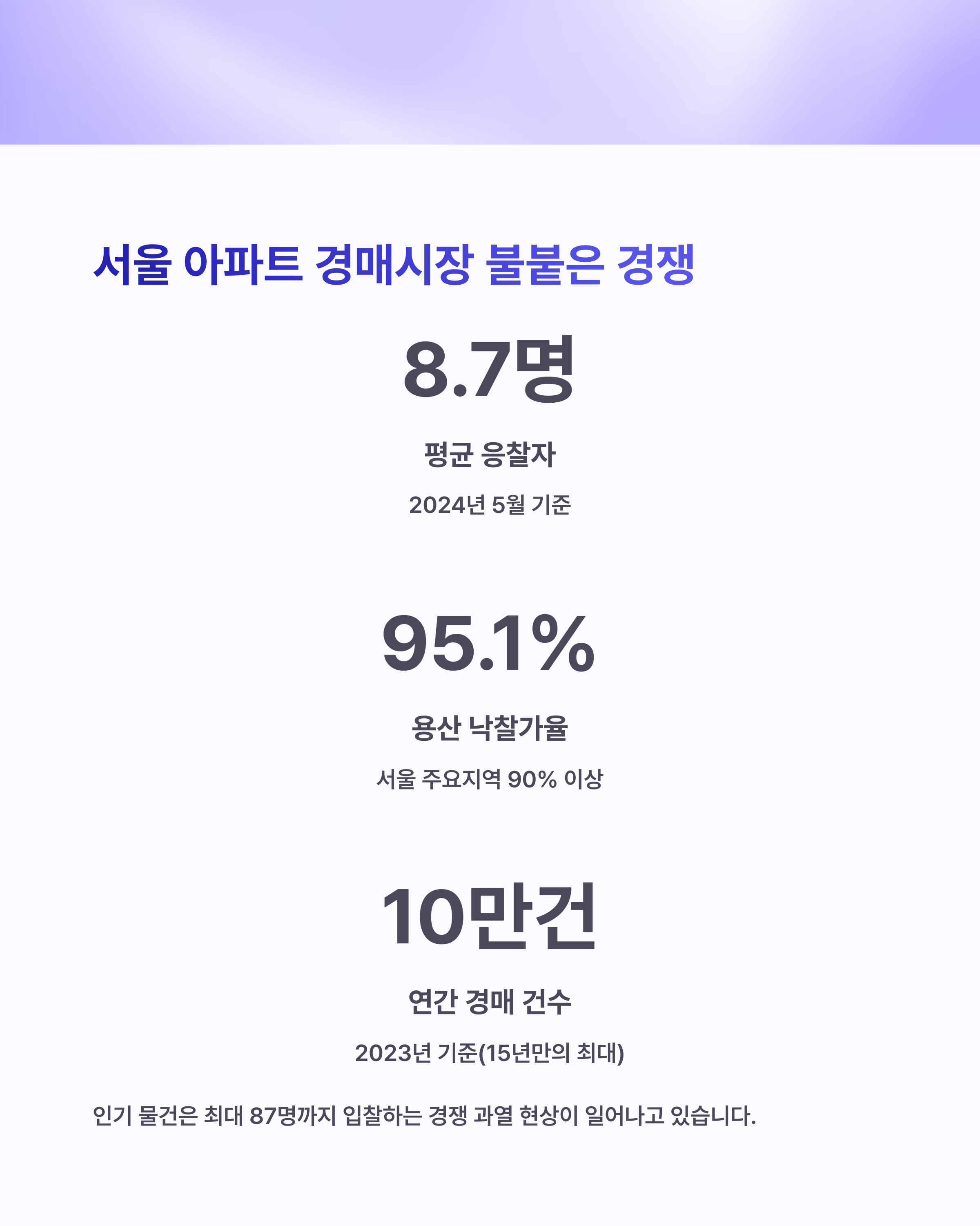 서울 아파트 경매 시장은 여전히 치열한 경쟁 속에 있습니다.