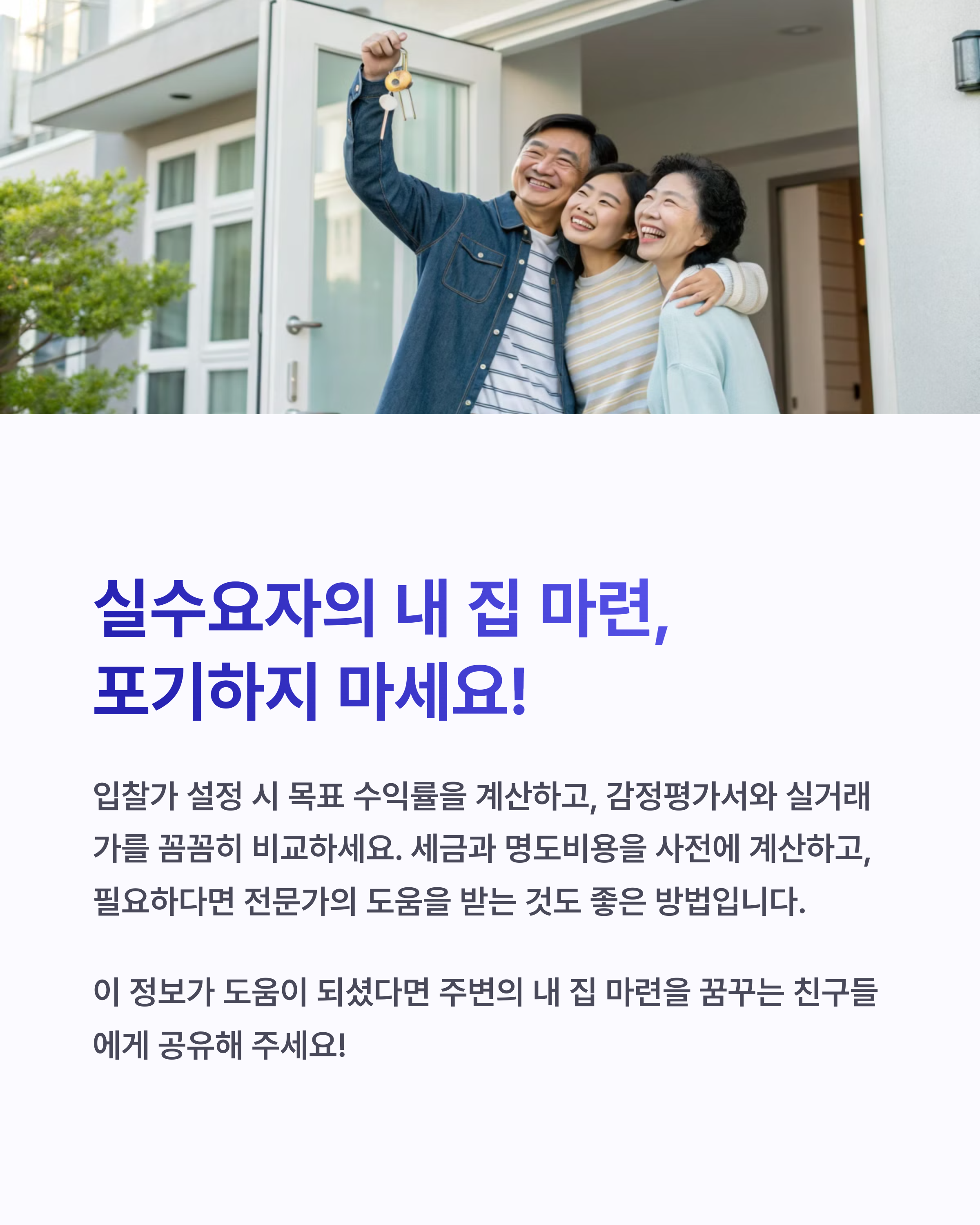- ✅ 정부 정책 활용: 청약제도, 세제 혜택 적극 이용