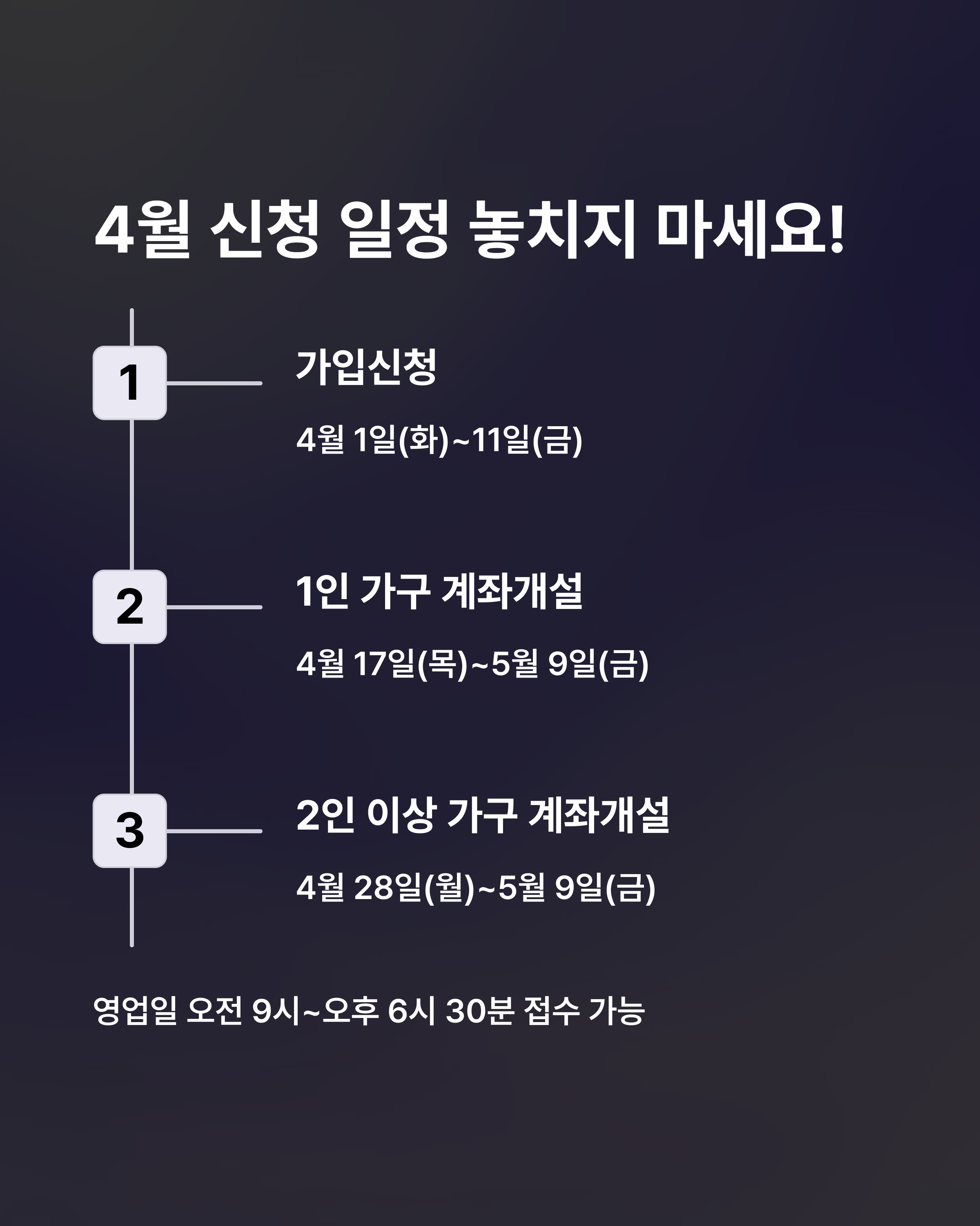 이 기간 안에 신청 서류를 제출하고 심사를 통과해야만 계좌를 개설할 수 있습니다.