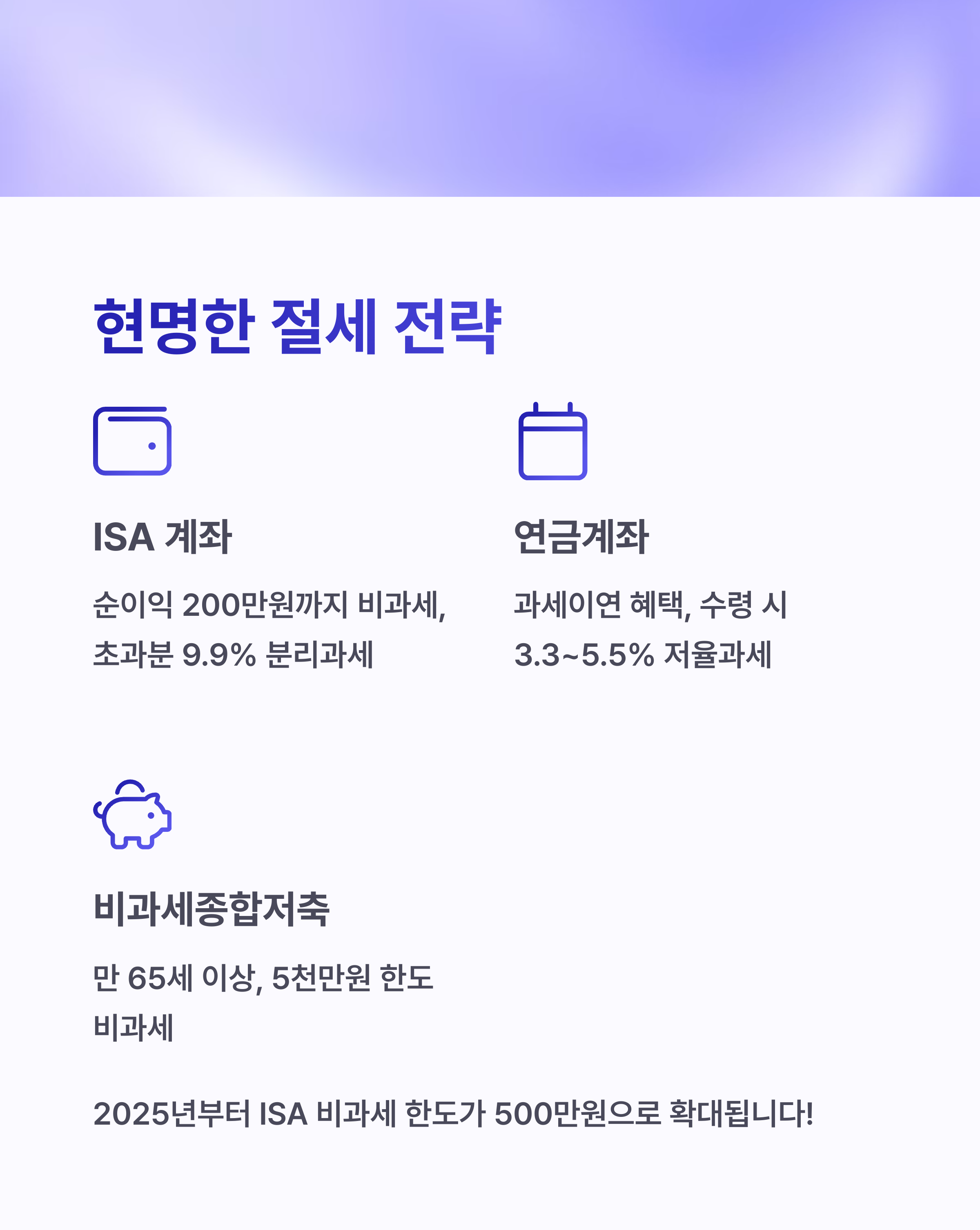 첫째, 세금 최적화: ISA나 연금계좌 활용으로 세금 부담을 낮추고,