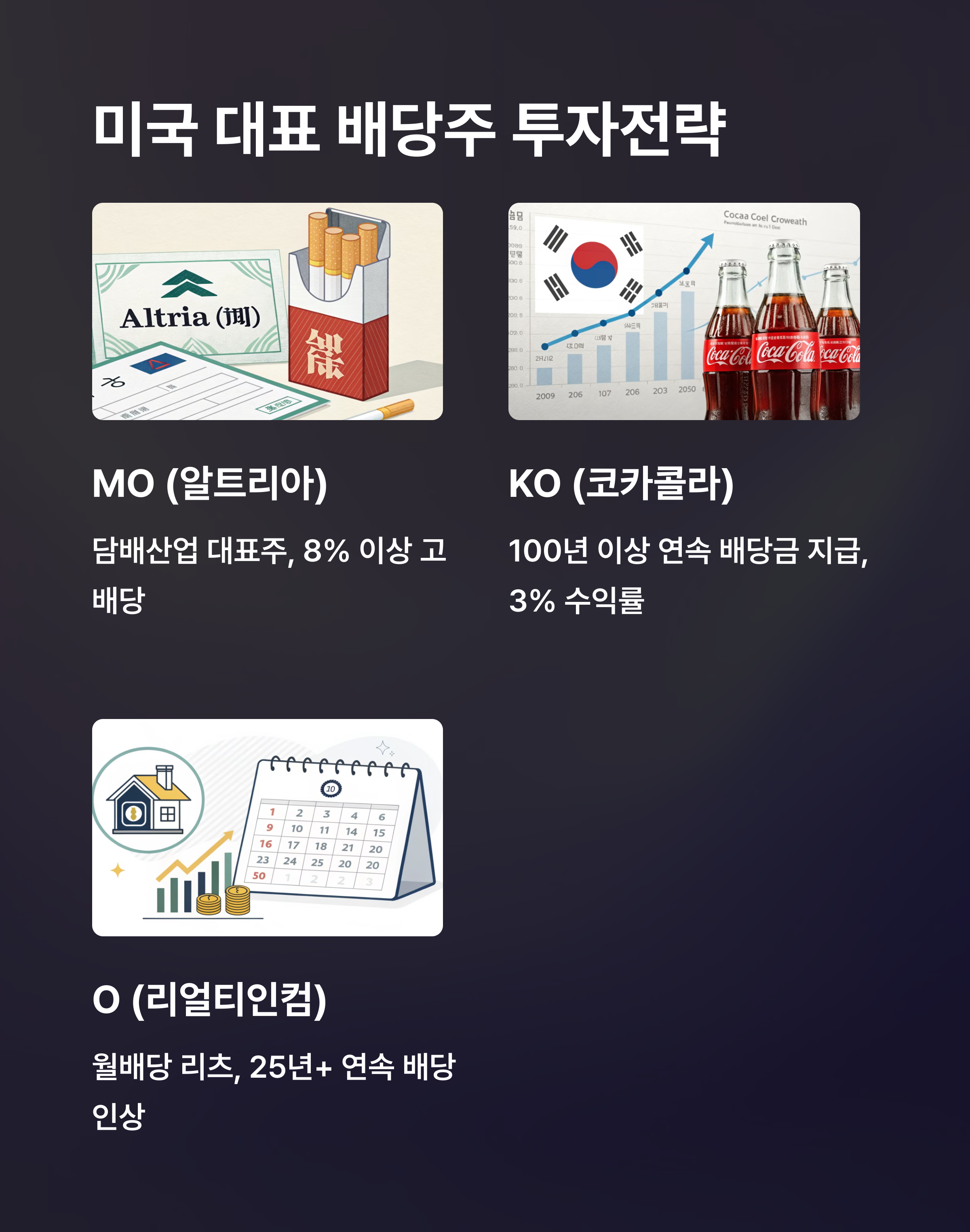 - 코카콜라(KO): 연속 배당 증가 기업, 수익률 2~3%