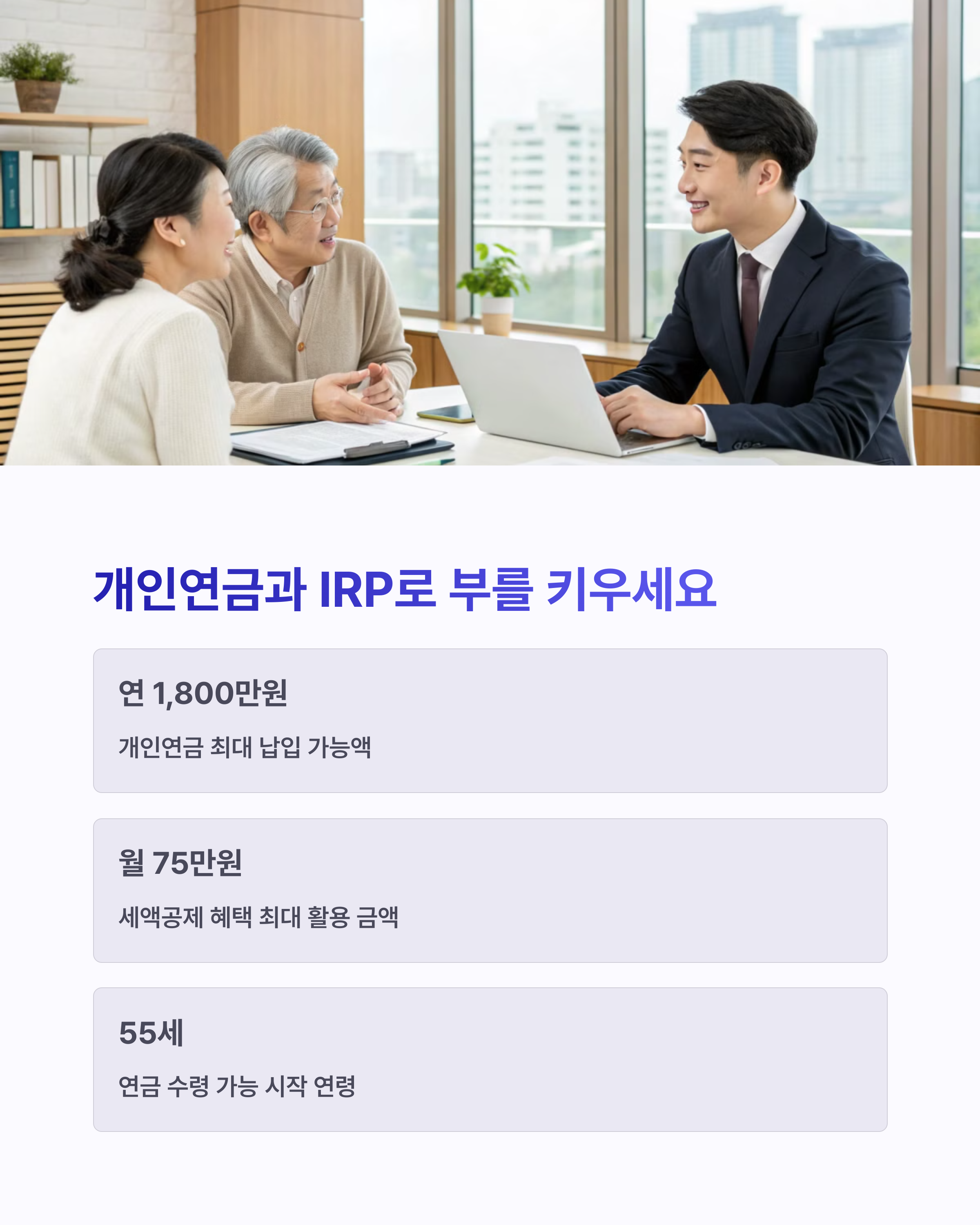 "노후는 먼 미래가 아니라, 바로 오늘의 선택에서 시작됩니다."