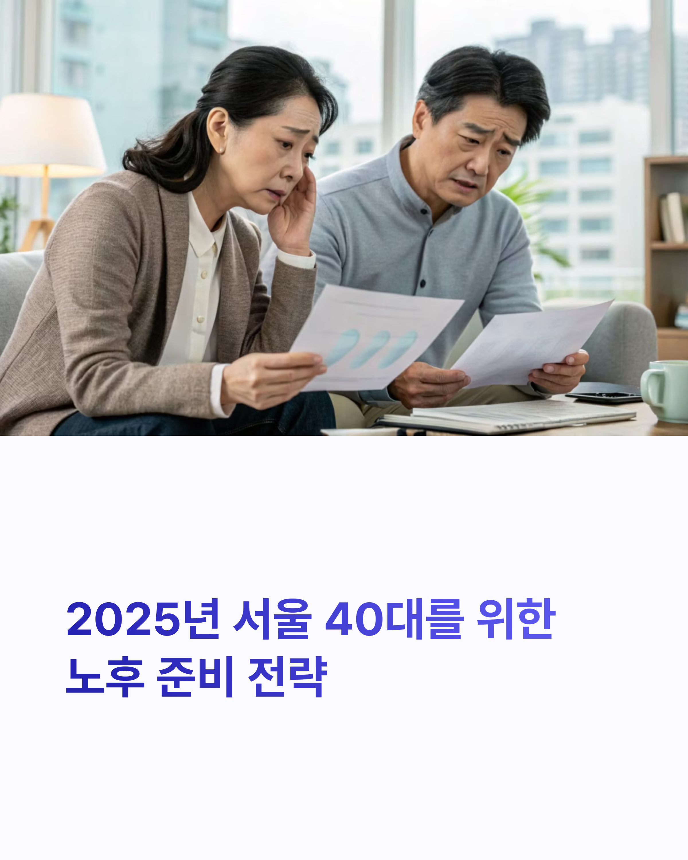 2025년 현재, 서울에 사는 40대라면 경제적 부담이 큰 상황이지만, 지금 이 순간부터 체계적으로 준비하면 안정적인 노후를 맞이할 수 있습니다.