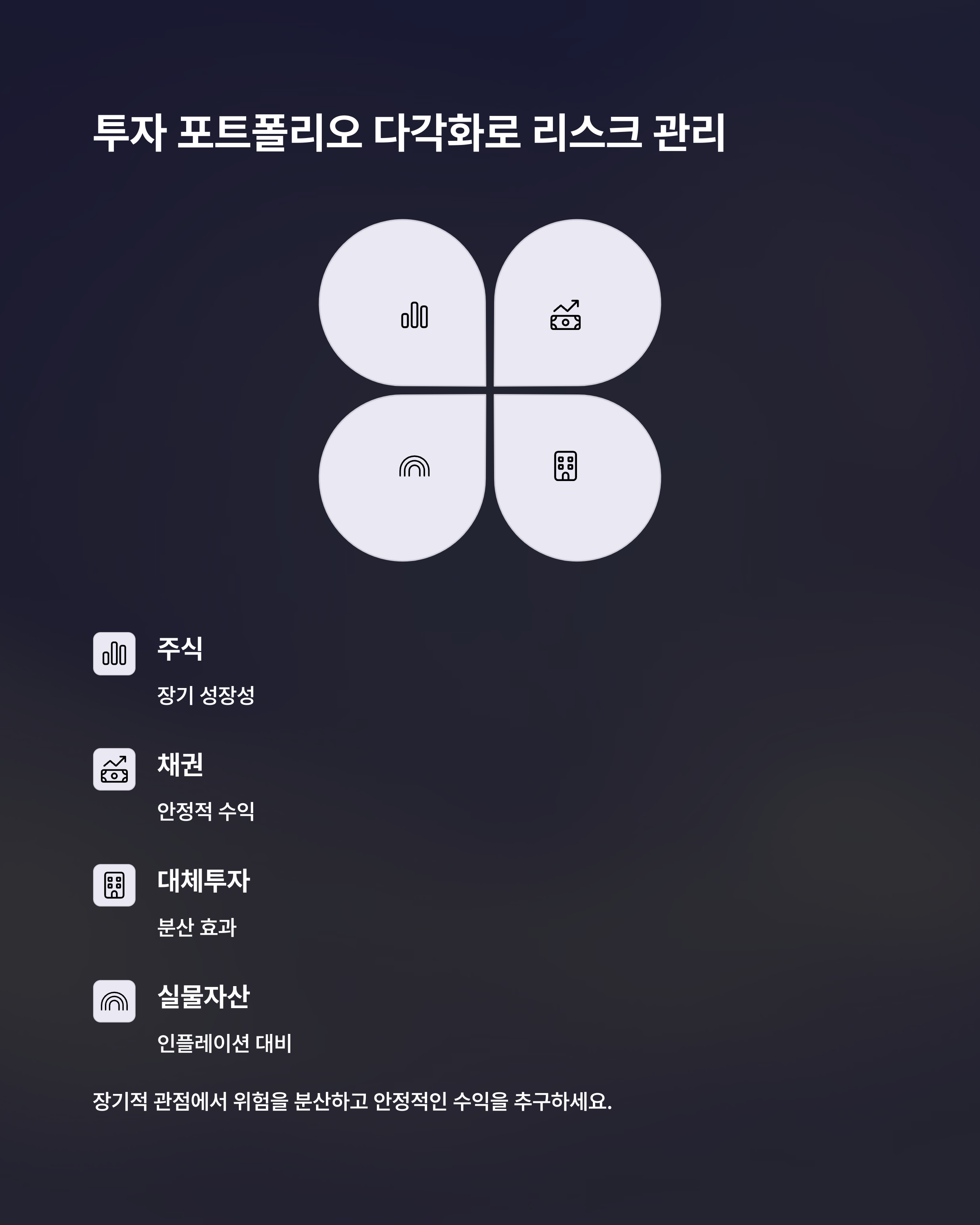 - ✅ ETF와 채권 비율 조정: 투자 성향에 따라 자산 배분