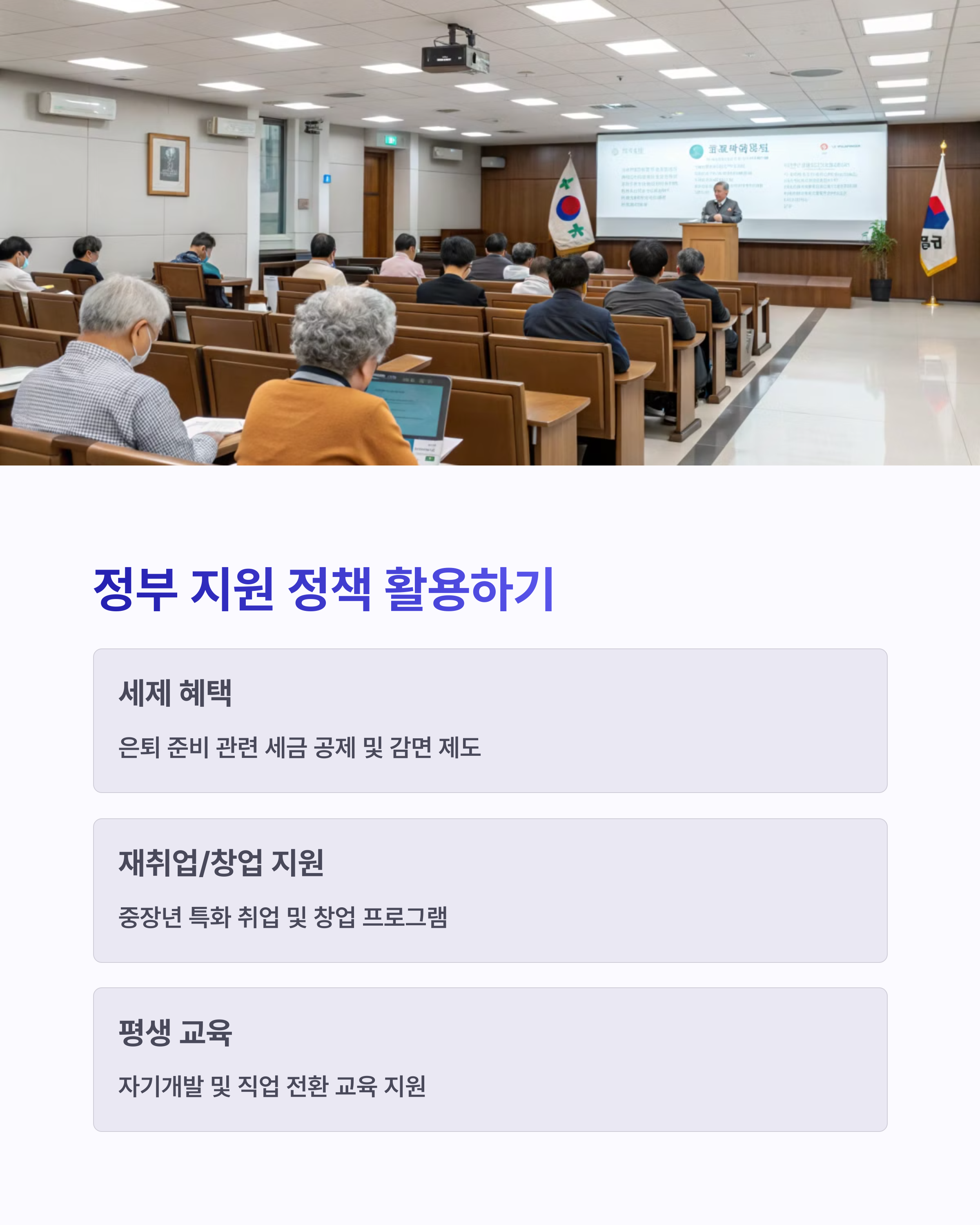 정부의 중장년 지원 프로그램과 금융교육도 함께 챙긴다면, 불안했던 미래가 든든한 노후로 바뀔 수 있습니다.