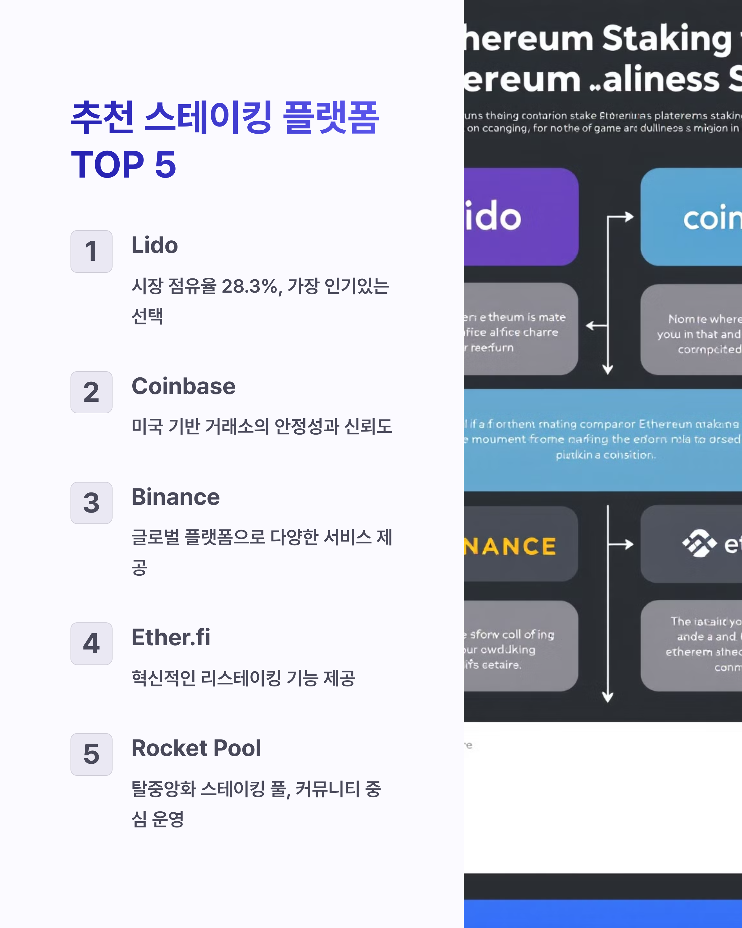 다양한 스테이킹 플랫폼 중, 2025년 기준 가장 안전하고 인지도 높은 TOP 5를 정리했습니다.