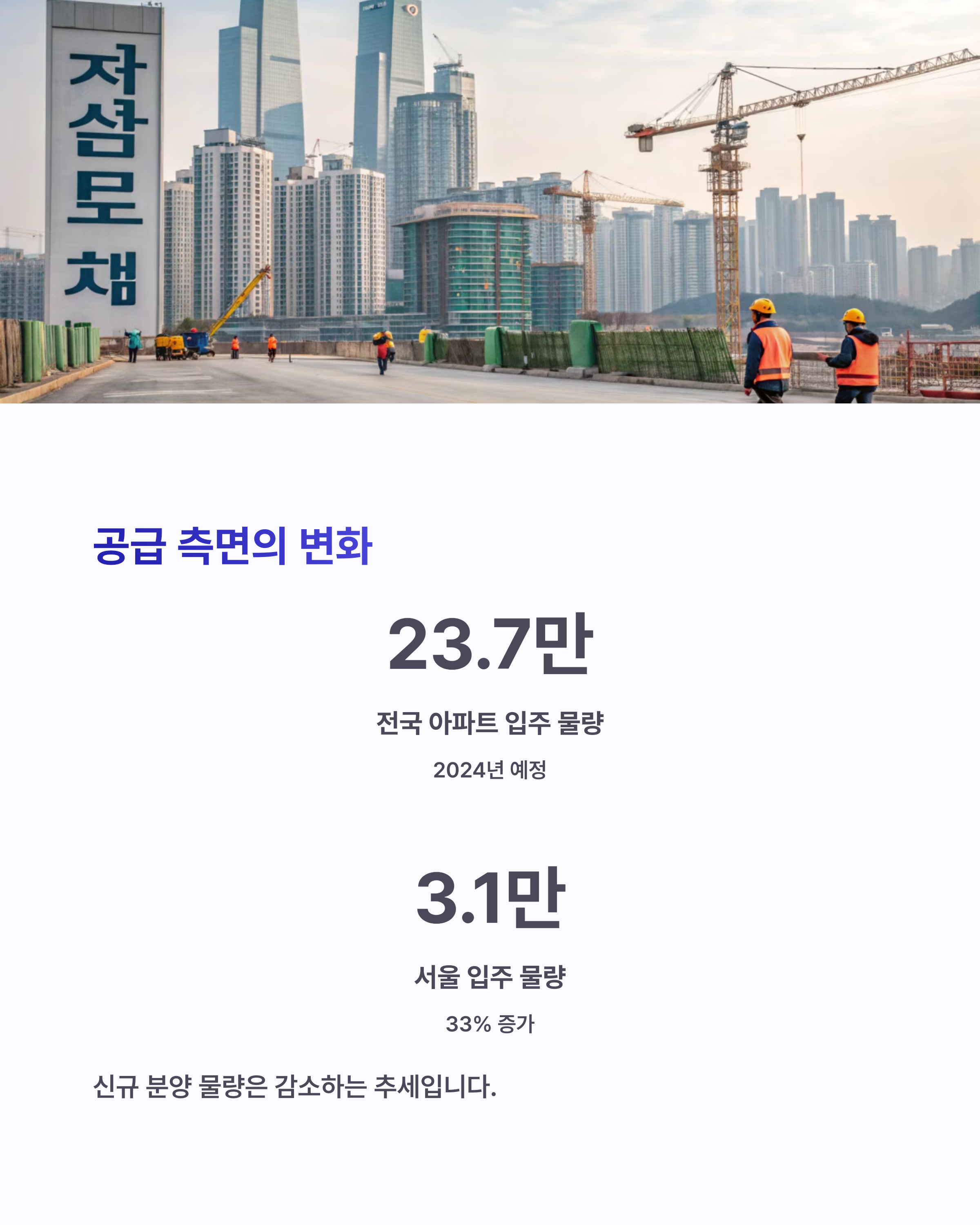 다만, 분양 일정이 대부분 연기된 상황에서 공급 부족 문제가 여전히 해결되지 않고 있습니다. 예컨대 중구 황학동의 '청계 노르웨이숲'(404세대) 단지만이 분양을 앞두고 있어 서울 내 신규 아파트 수는 극히 제한적입니다. 공급이 제한되고 수요가 회복되는 시장에서는 가격이 다시 상승할 수밖에 없다는 분석이 지배적입니다.