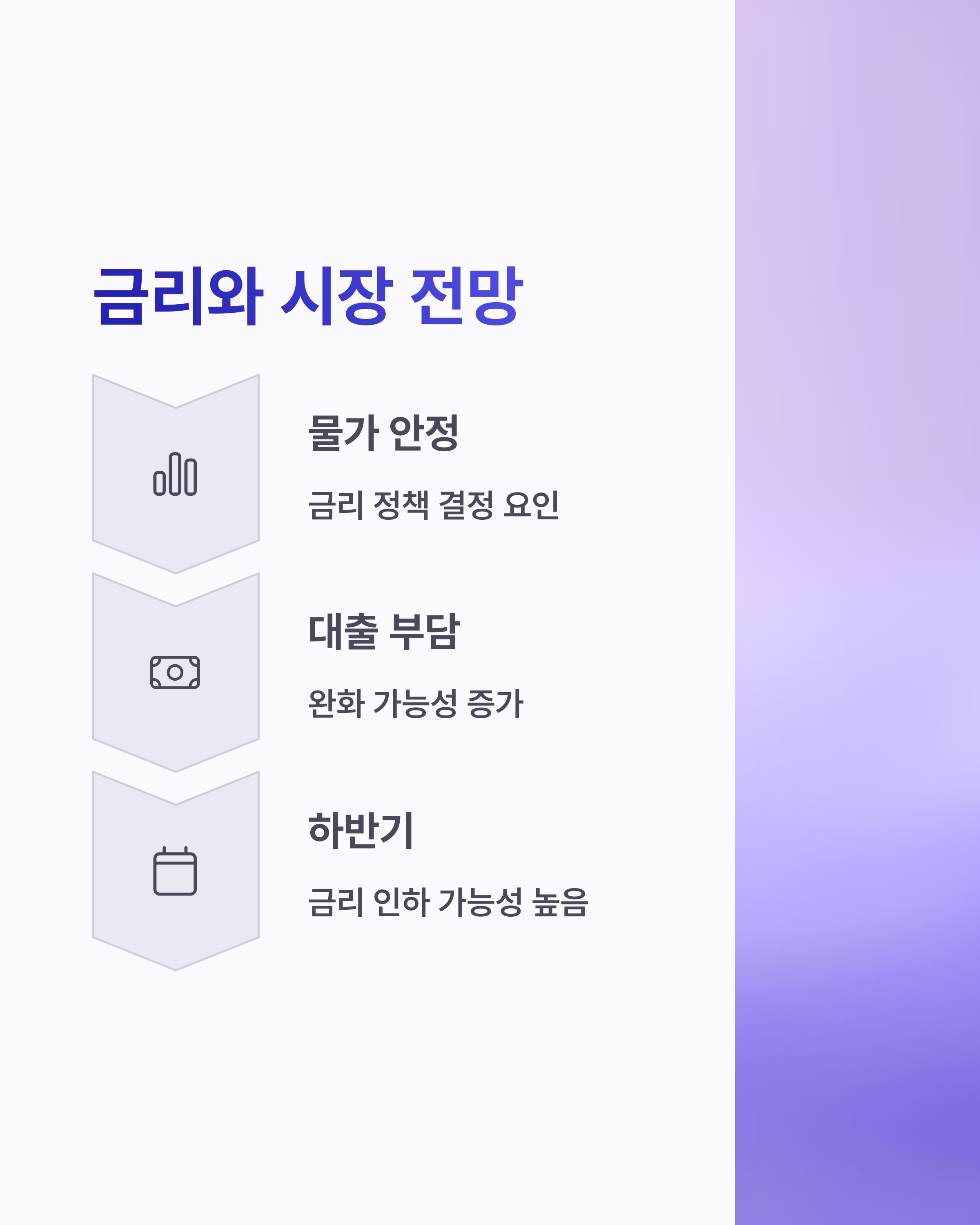 금리가 고점에 머물 경우 대출 부담이 커지면서 수요 위축이 예상되며, 반면 금리 인하가 현실화되면 실수요자의 매수 움직임이 활발해질 수 있습니다.