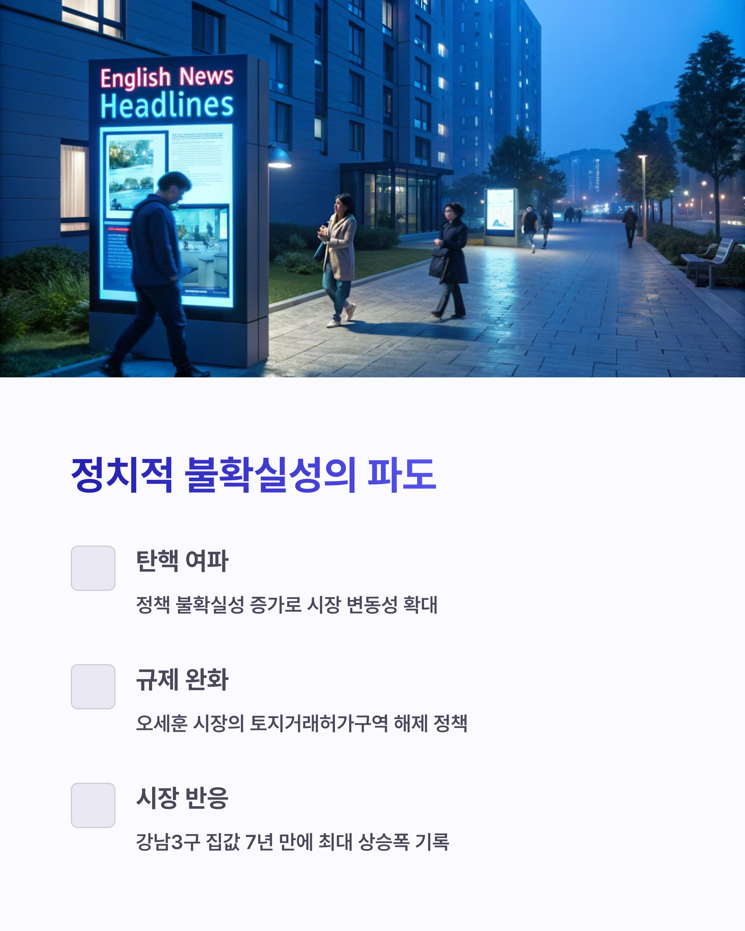 이 정치적 대변화는 단순히 뉴스 한 줄로 끝나지 않습니다. 그 여파는 곧장 '서울 부동산 시장'으로 퍼져 나가죠.