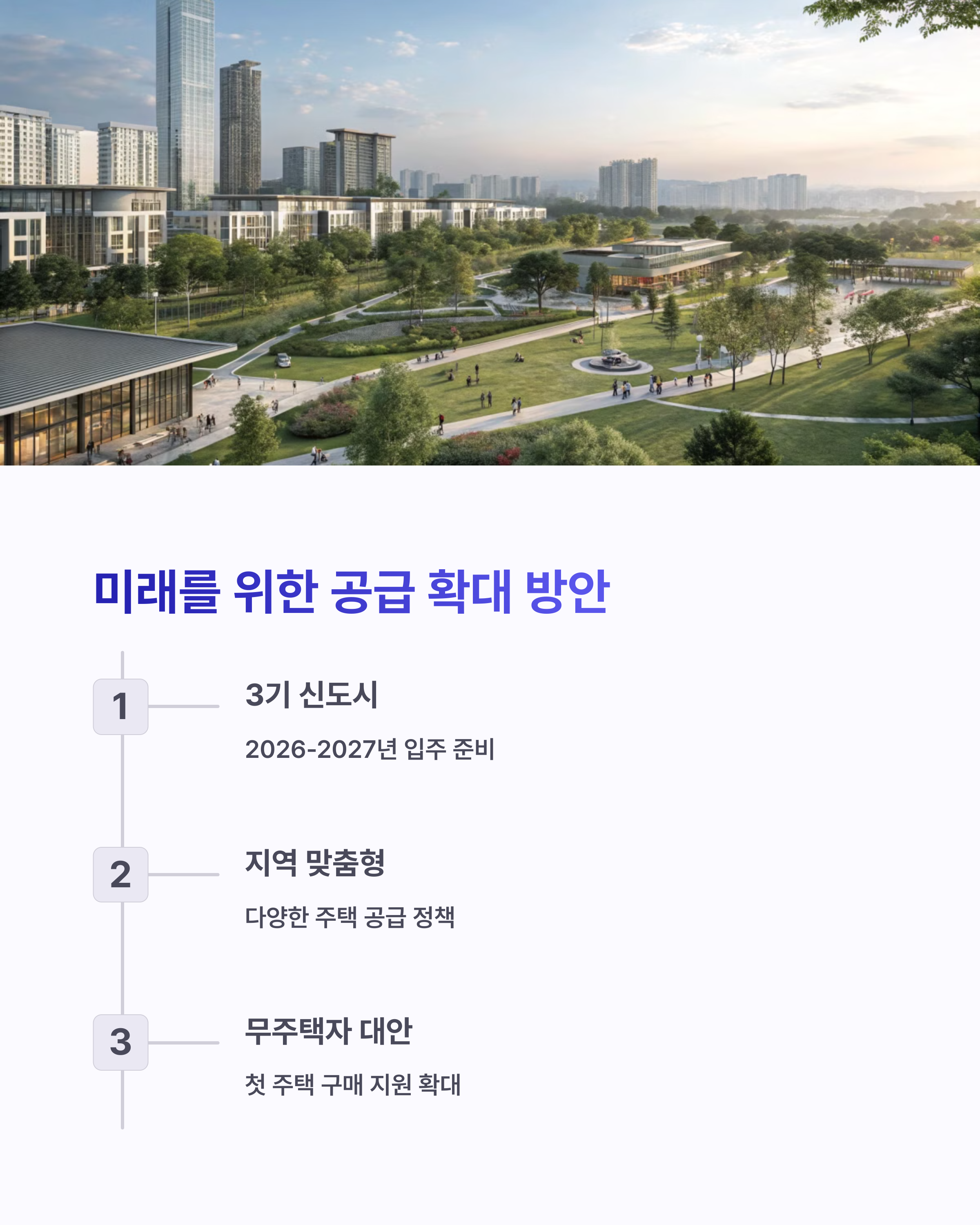 A. 최소 2~3년은 공급 공백이 지속될 것으로 보입니다. 정비사업과 신도시 입주 시점이 도래해야 실제 체감 공급이 가능해질 전망입니다.