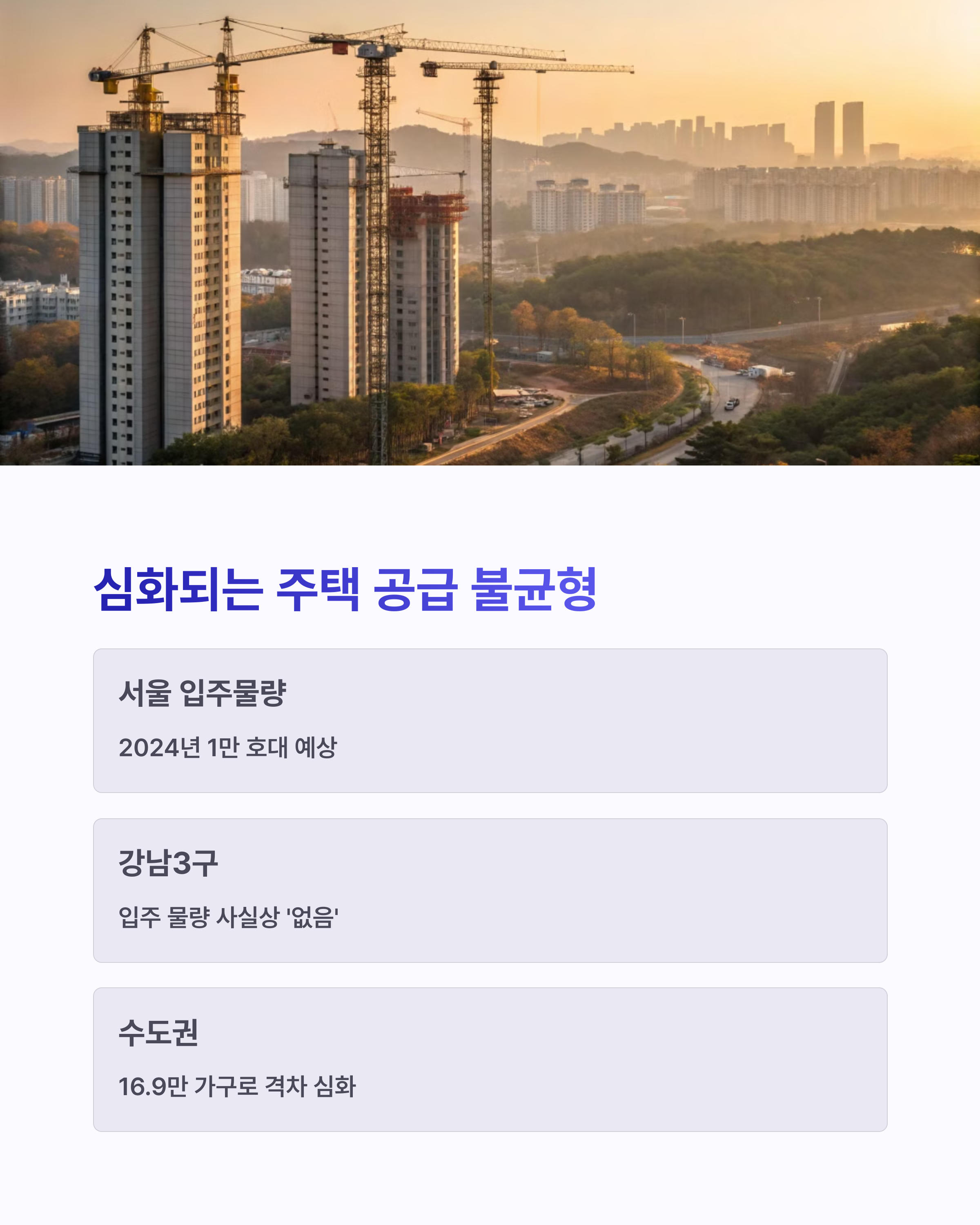 | 공급 문제 | 30% 공급 감소 예상, 지역 간 양극화 심화 |