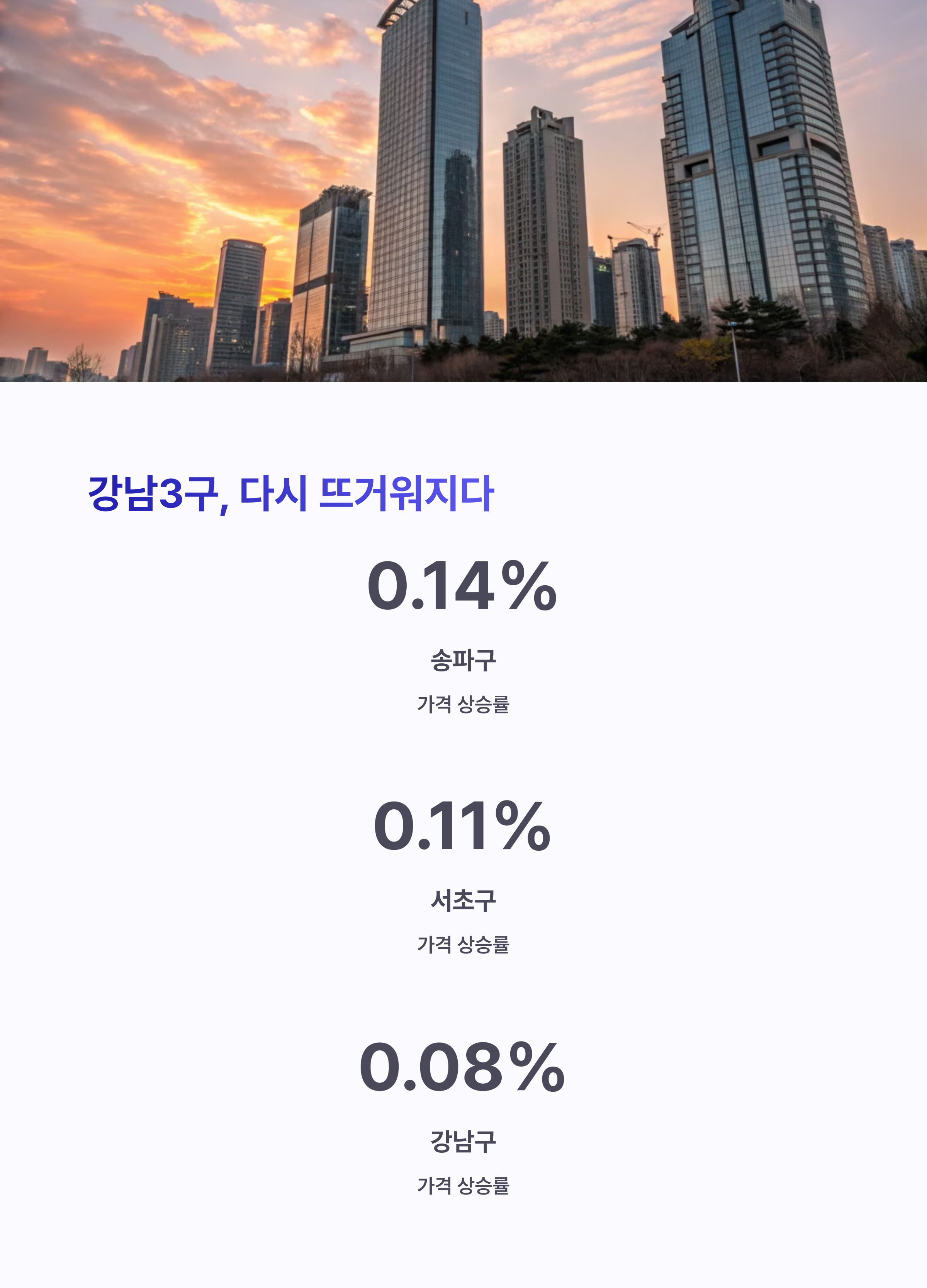 | 강남3구 | 가격 상승률 7년 만에 최고, 청약 경쟁 과열 |