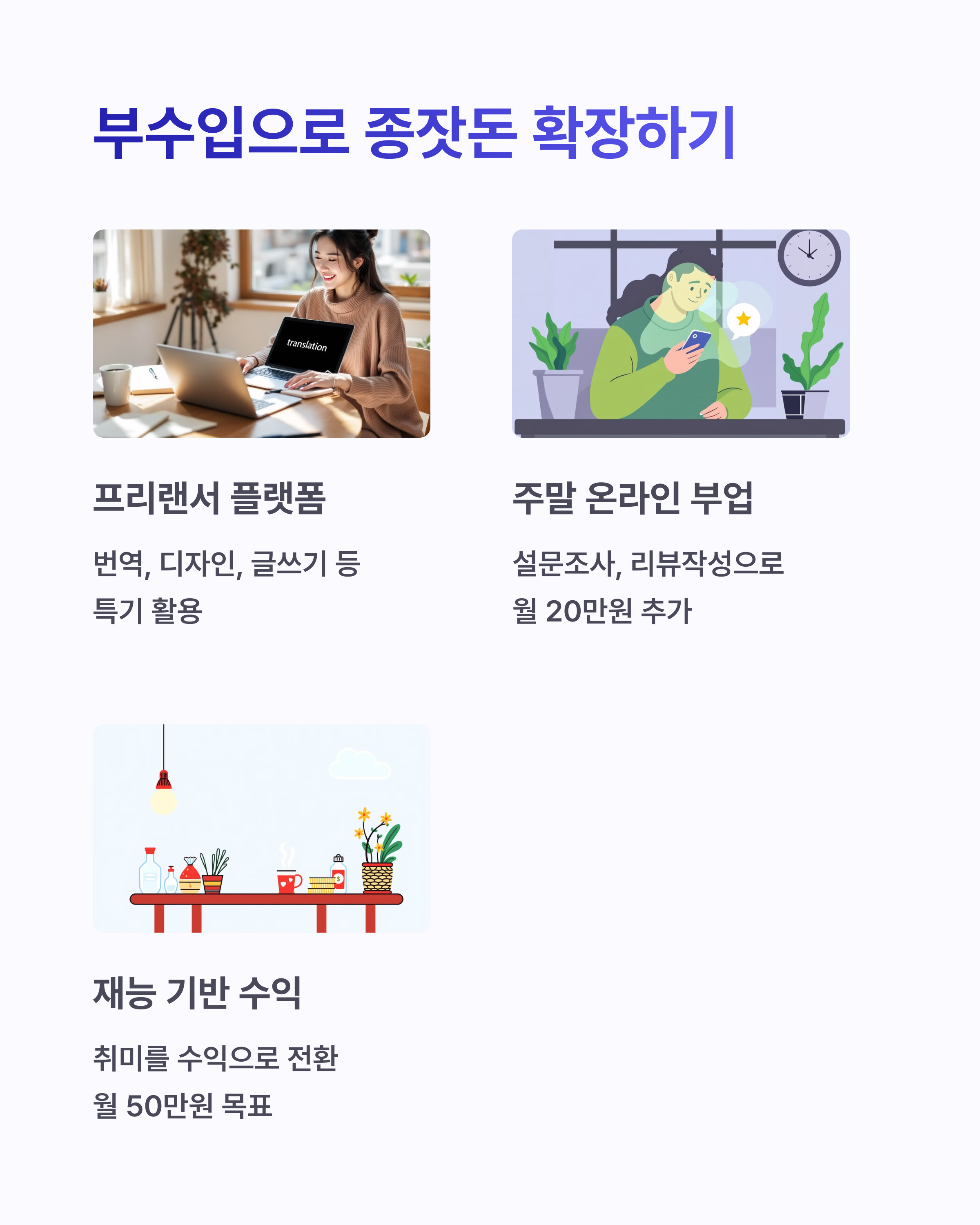 저축만으로는 부족하다면? 그럴 땐 부업과 재테크로 수입을 늘리는 방법이 있습니다. 누구나 도전할 수 있는 쉬운 부수입 아이템을 살펴볼게요.