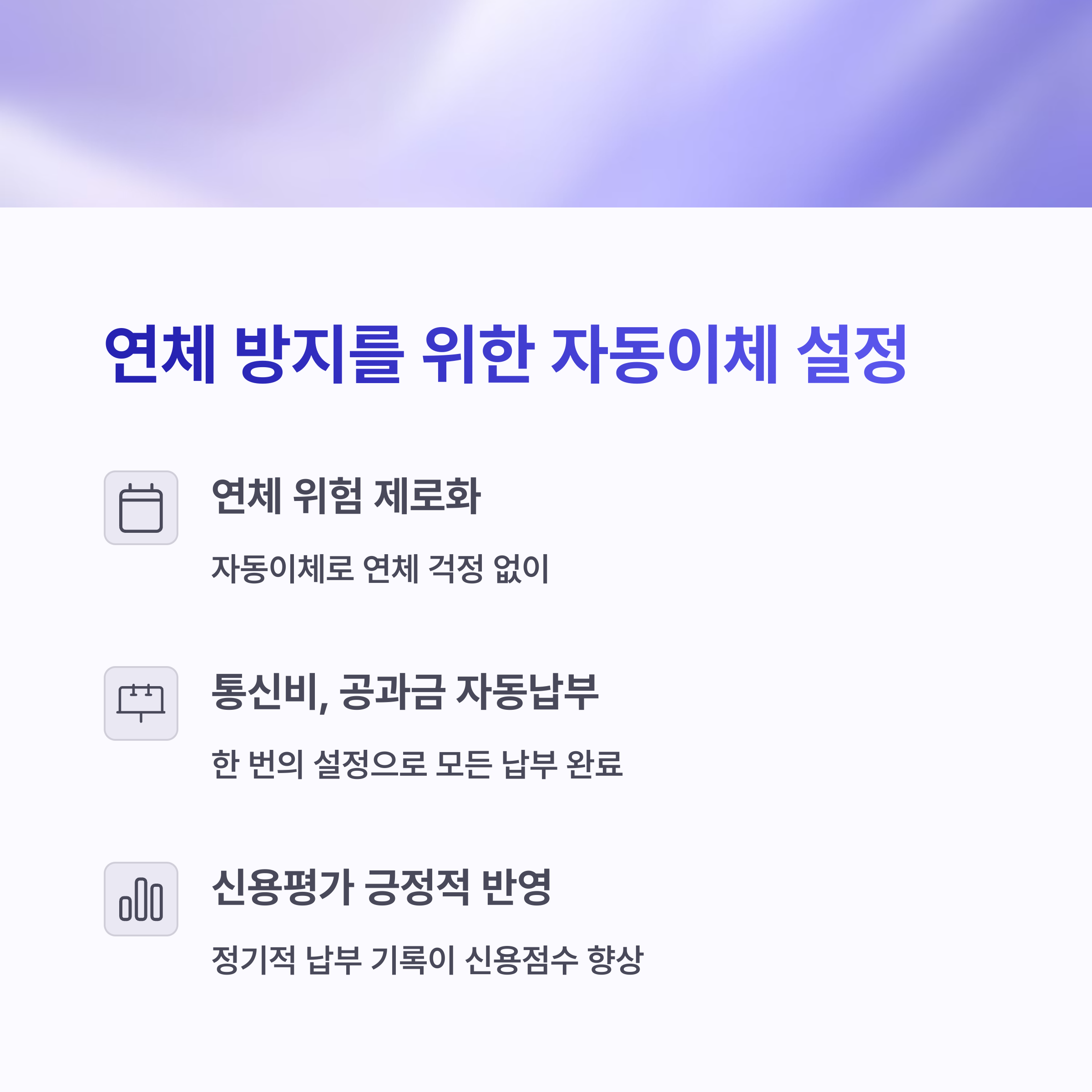 이런 연체를 예방하는 가장 쉬운 방법은 바로 자동이체 설정입니다.