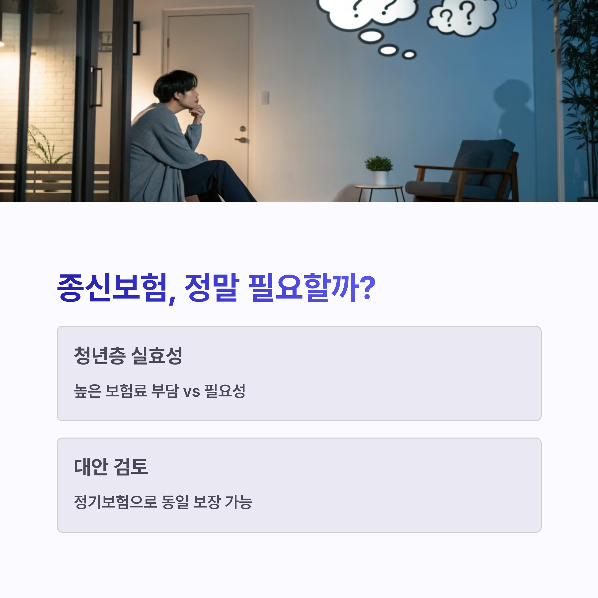 ⚠️ 주의: 20~30대 시기의 종신보험은 환급율이 낮고, 해지 시 손해가 큽니다. 가입 전 반드시 목적을 명확히 하세요.