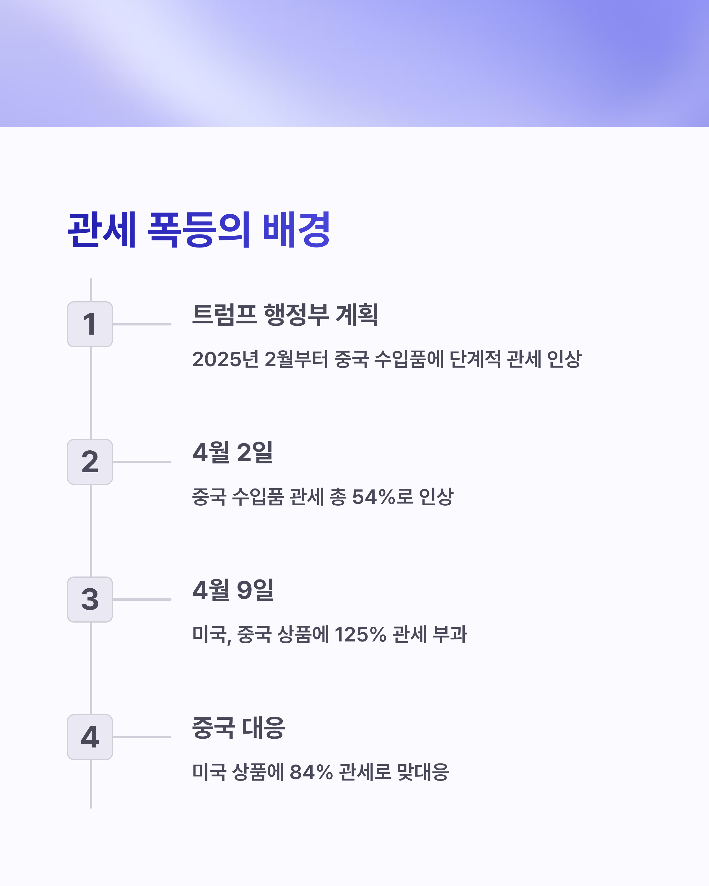 2025년 4월 9일부로 미국은 중국산 제품에 대해 총 125%의 고율 관세를 부과하며 글로벌 시장에 큰 파장을 일으켰습니다.