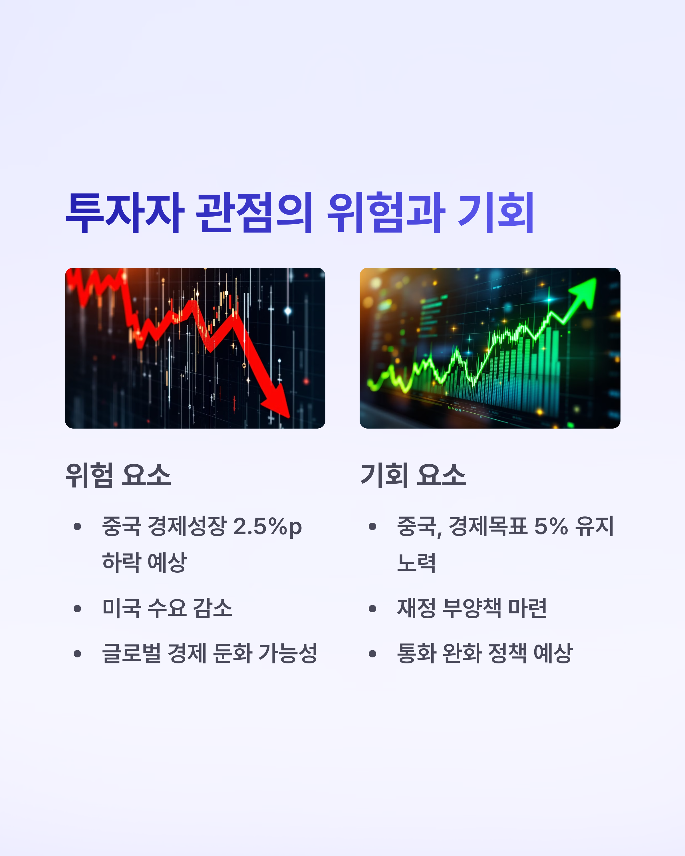 글로벌 투자은행 Citi는 중국 GDP 성장률 전망치를 4.2%로 하향 조정했으며, Goldman Sachs는 최대 0.9% 감소 가능성을 경고하고 있습니다.