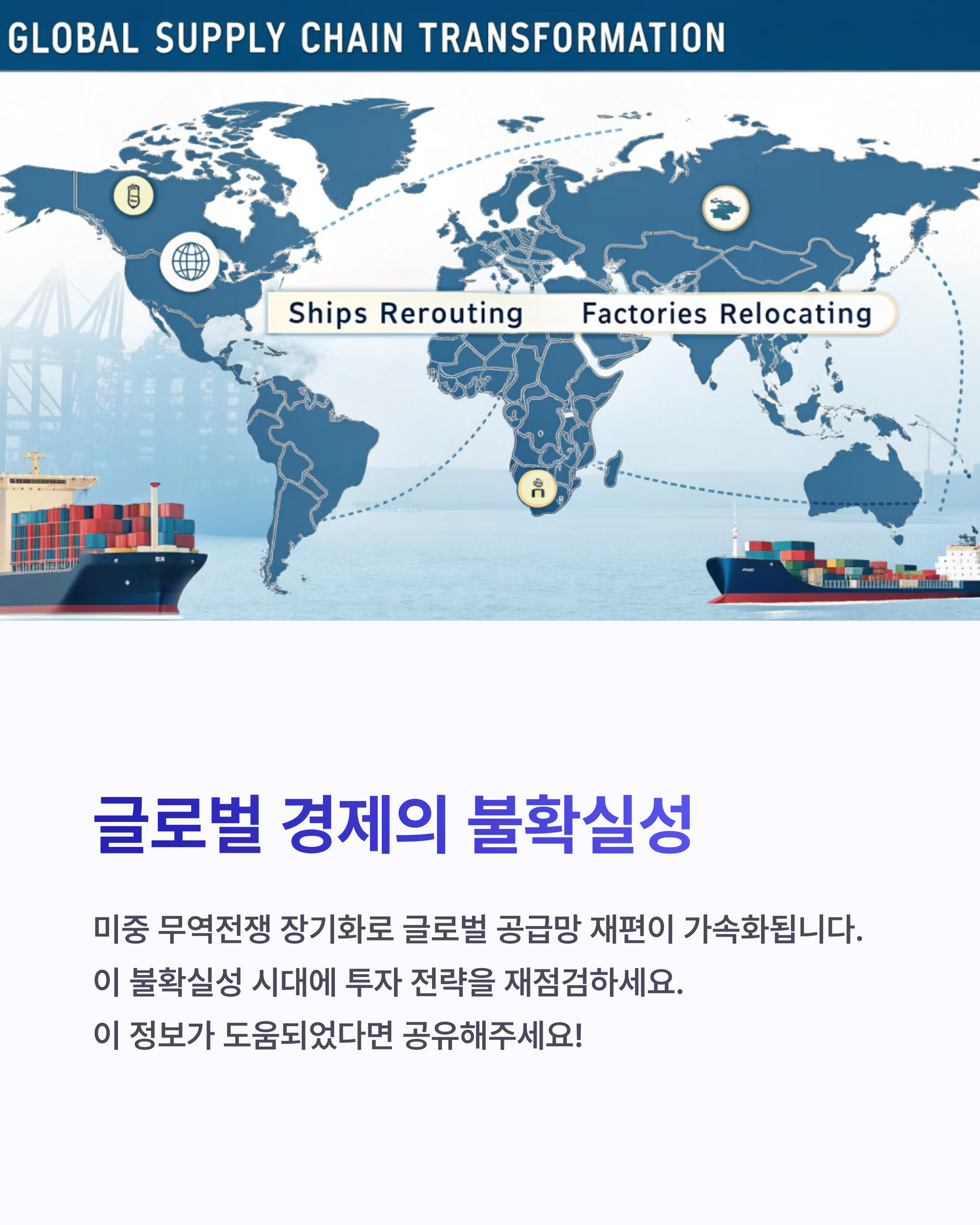 정치, 경제, 산업, 투자 전반에 영향을 미치며 글로벌 공급망 재편이라는 중대한 흐름을 만들어가고 있습니다.
