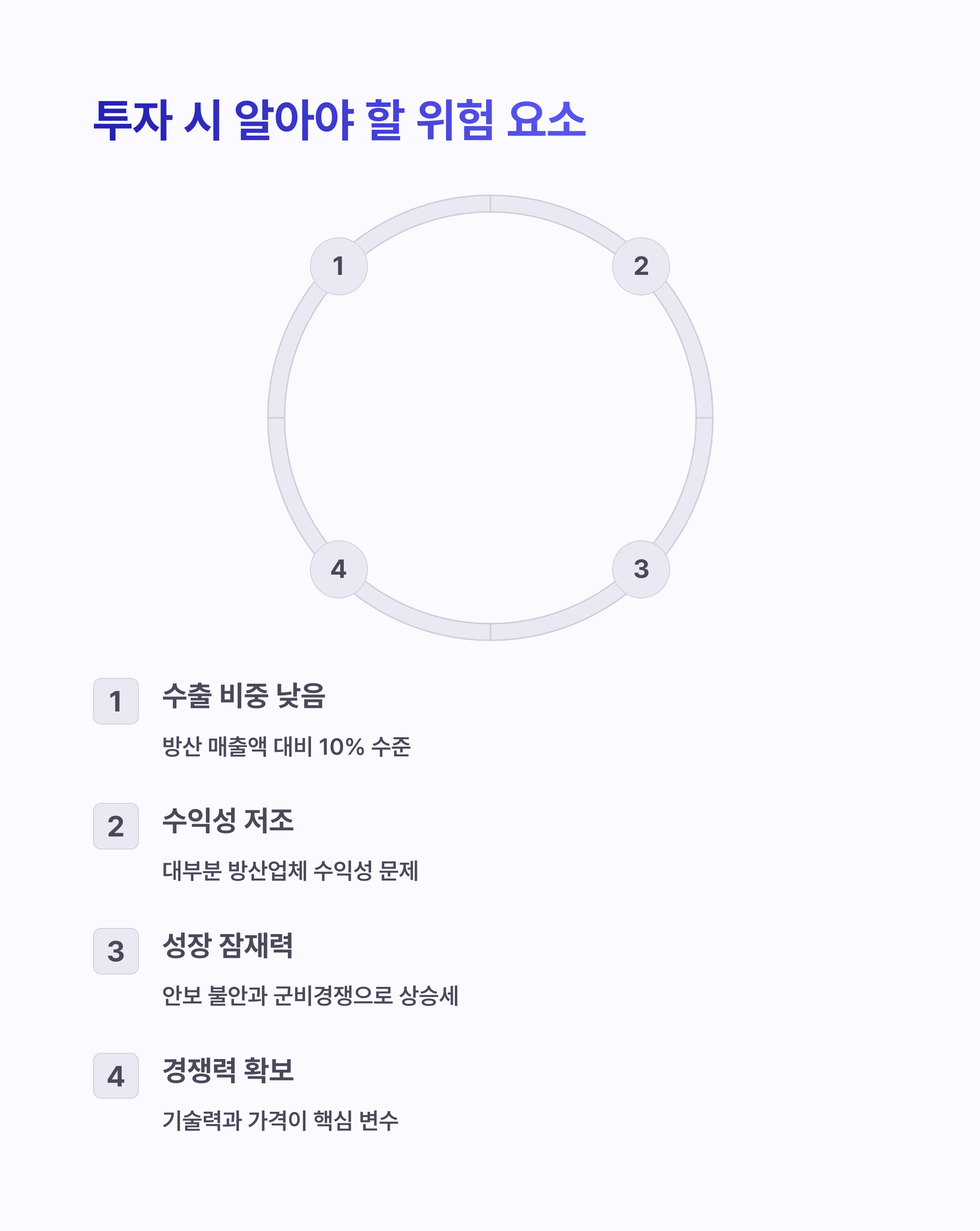 ⚠️ 주의: 방산주는 정책 변화와 지정학적 이슈에 민감하게 반응하므로 단기 변동성이 매우 큽니다.