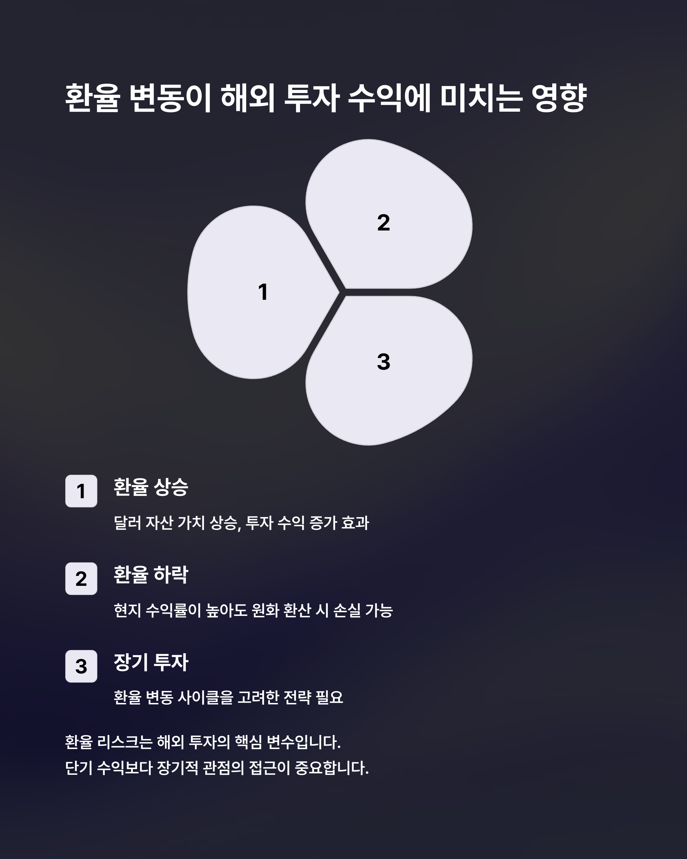 고환율 환경에서는 단일 통화에 의존하지 않는 글로벌 분산 투자 전략이 필수적입니다.